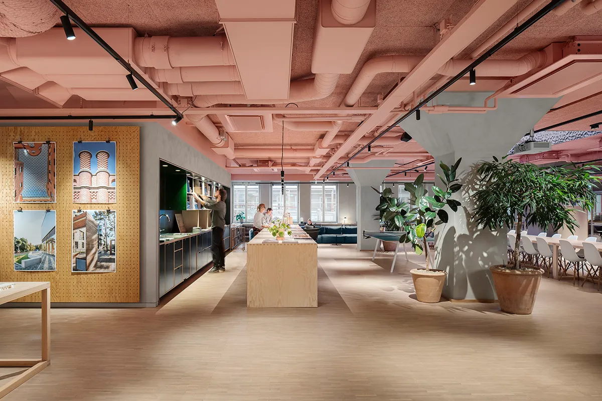 Tengbom designed the interior for their own office in a former mineral water factory from 1934 in Stockholm. With clear sustainability ambitions and a limited budget, the goal was to create a creative environment centered around collaboration and well-being. Through reused interior elements, natural colors, and materials primarily consisting of wood, along with elements of biophilia, the office has achieved an interior and work environment that is sustainable on multiple levels. By celebrating imperfection and stimulating the senses with unexpected elements, the office offers a creative atmosphere that promotes knowledge exchange and new ideas.