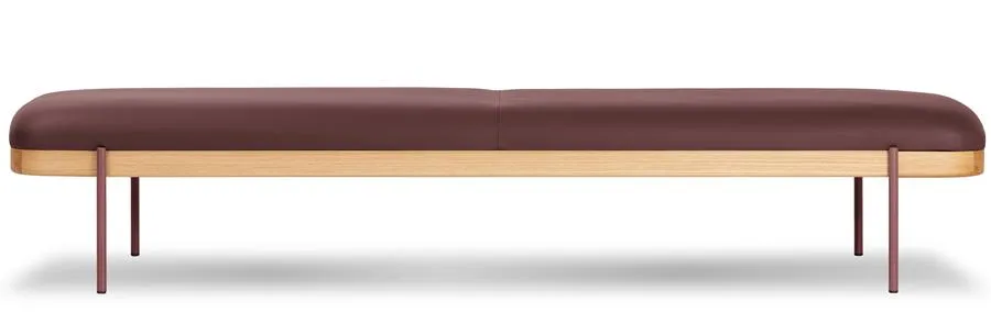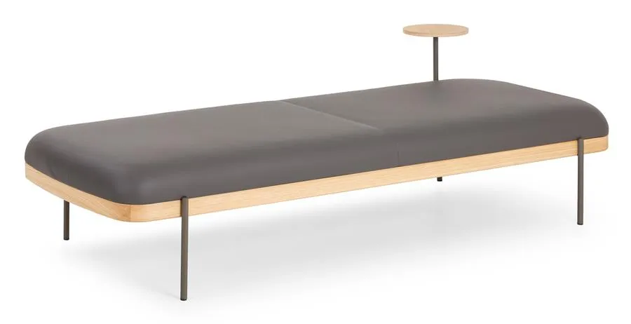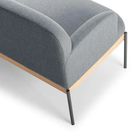 The visible wooden frame is a detail that allows numerous combinations of upholstery fabrics and finishes without compromising the design integrity. The metal support structure positioned on the outside of the wooden frame, and available in a range of finishes, presents interesting possibilities for the inclusion of integrated side tables.