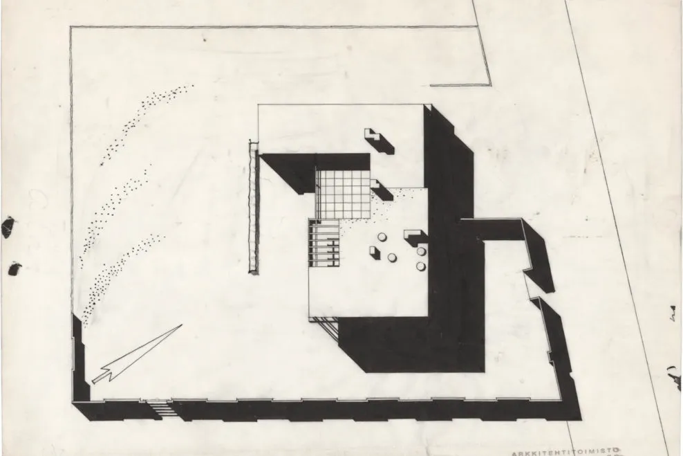 The house’s street-side façade is closed. Drawing © Alvar Aalto Foundation.