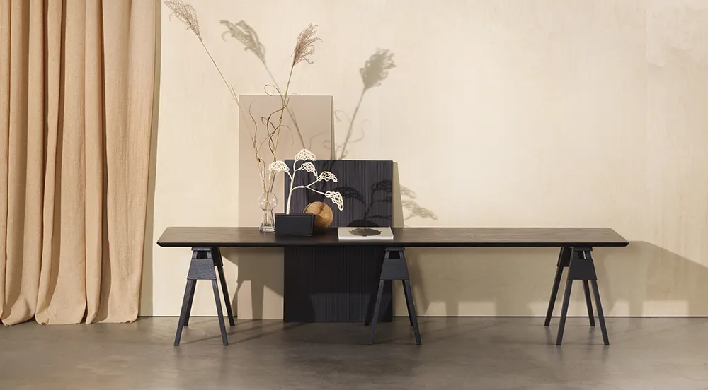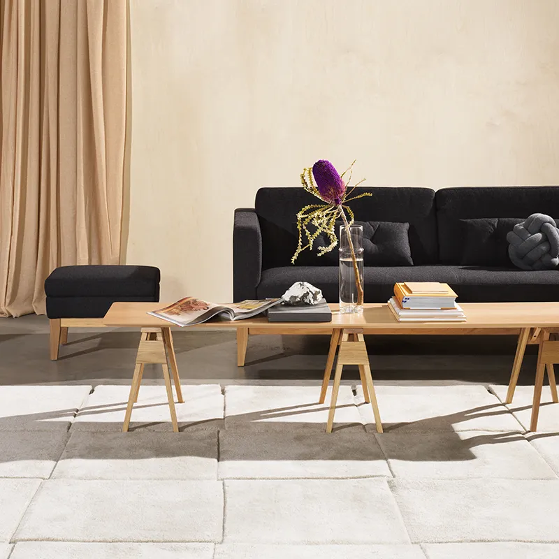 The series was born in 2015 from an idea with classic trestles, which have played an important role in Design House Stockholm’s development of the Arco tables. It started with a desk, which then inspired a dining table, leading to these new additions to the family. The Arco series is now complete with practical tables sporting high or low trestle legs. The idea is simple and functional, building on Chuck Mack’s development of traditional carpenters trestles used by carpenters when adjusting the height of their working tables.