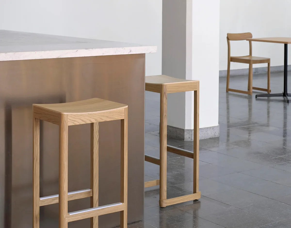A simple seat made of solid wood, the Atelier Bar Stool is a study in …