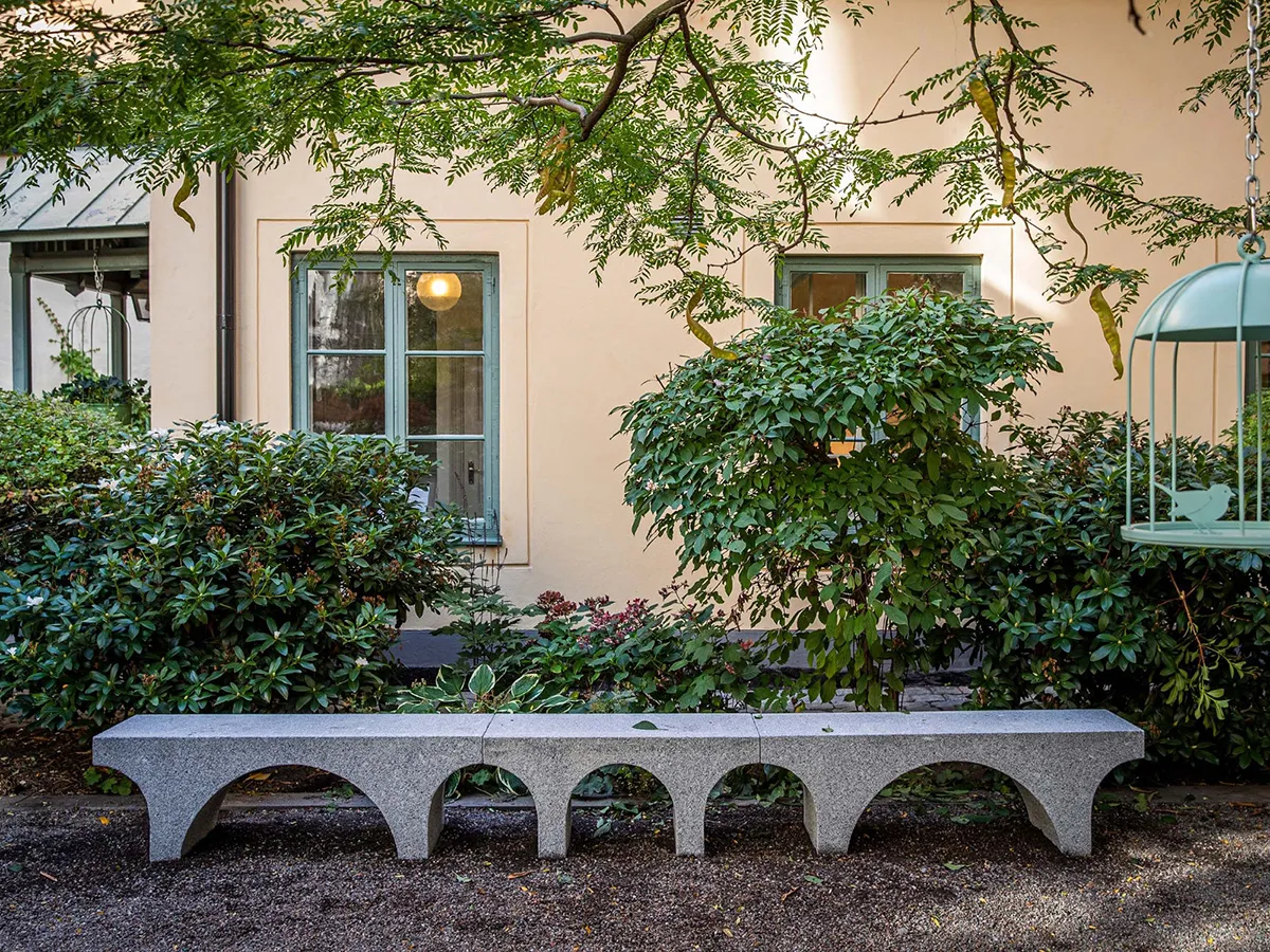 The granite bench Via draws historical references from the garden where it was exhibited during the Stockholm Creative Edition. Via’s form was inspired by Roman aqueducts and viaducts, and the bench has a strong architectural presence.