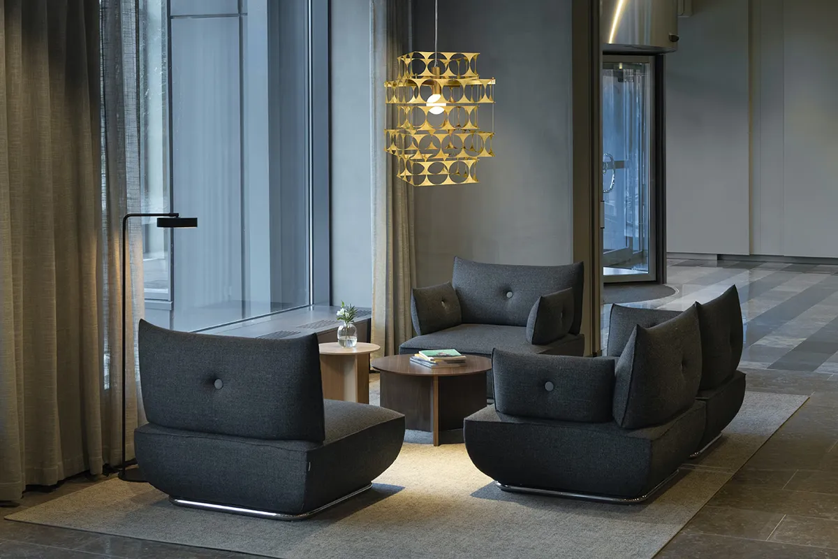 The Terrace is named after the building it was designed for, Hyllie Terrass in Malmö, as well as the different levels that, much like a terrace, give the light fixture its unique silhouette. Hyllie Terrass, completed in 2023, is Skanska’s first climate-neutral project and one of the few in Sweden to receive certification from the Sweden Green Building Council.