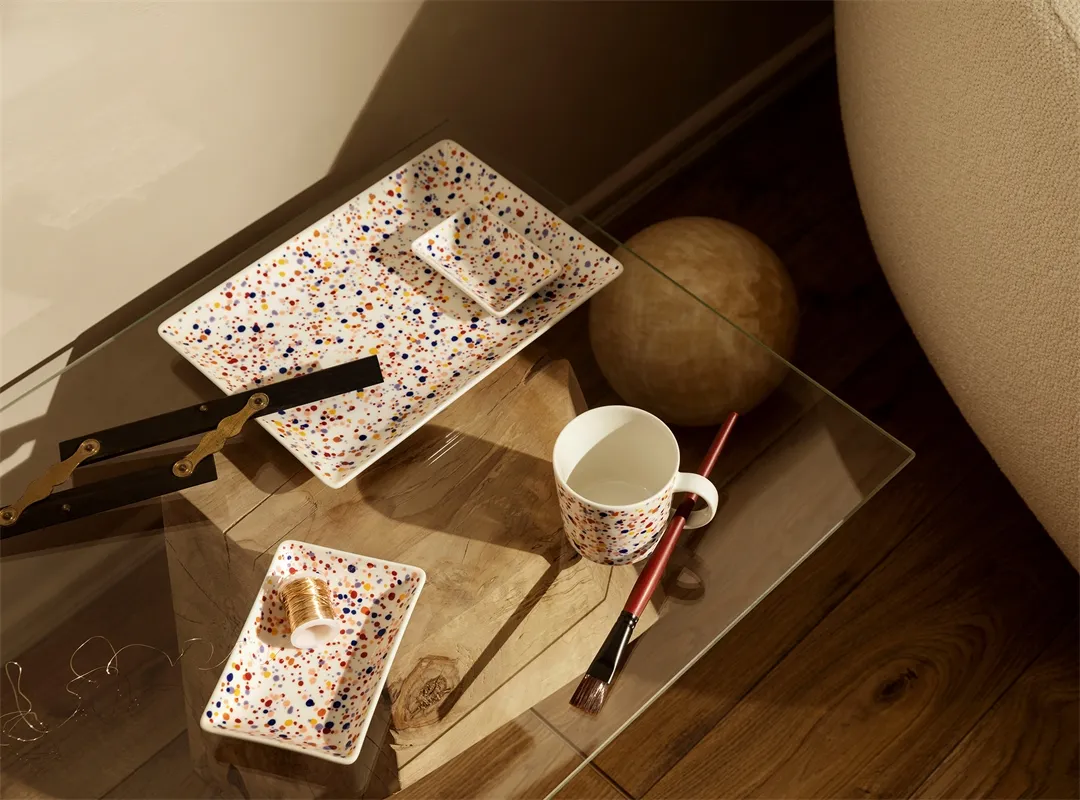 All of the new items are tied together by six distinct artworks by Toikka that form the patterns on each piece. Although each work of art is different, they all share a bold, graphic style with similar lines and detailing.