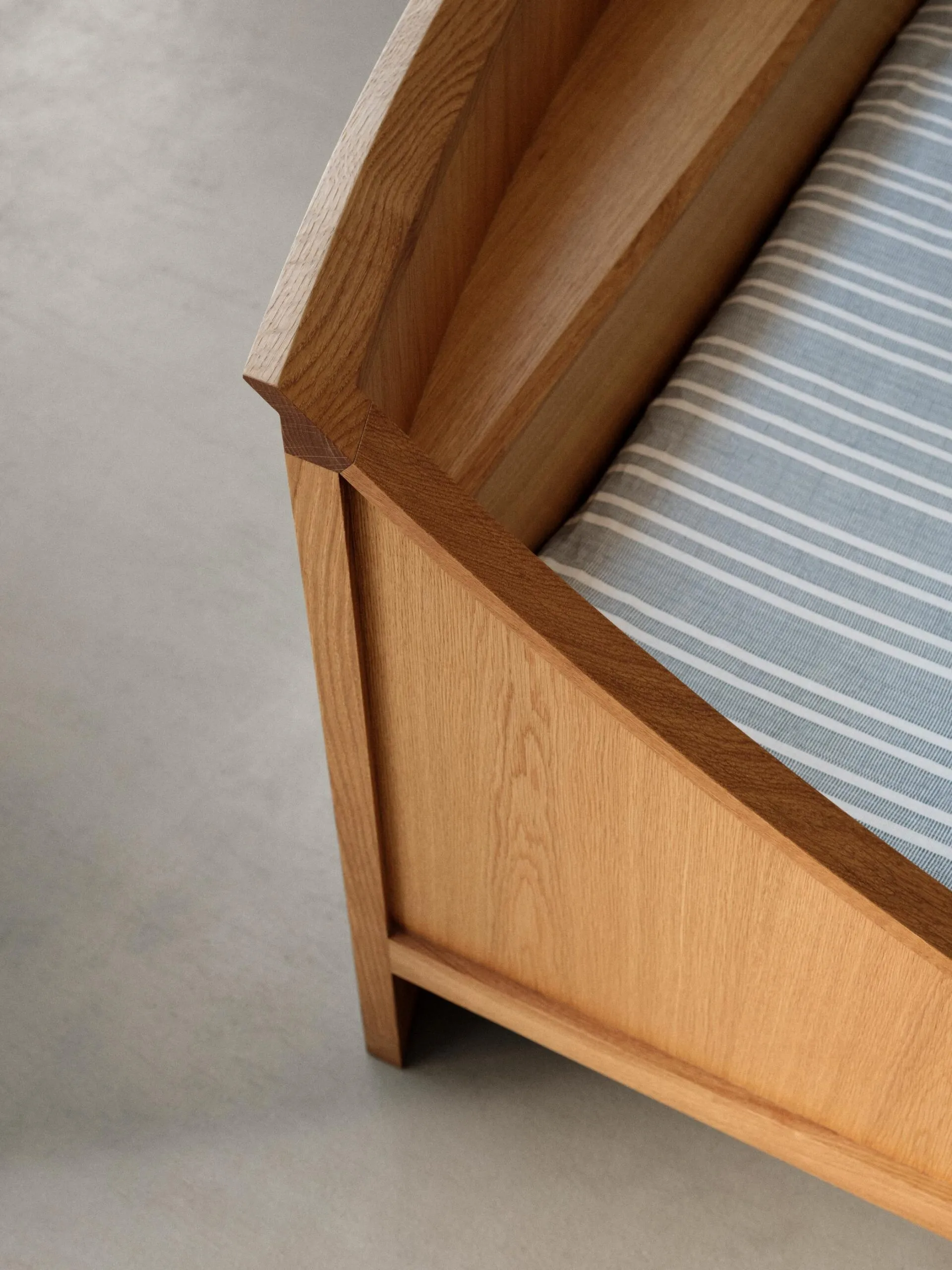 The English Chair and Spherical Bed are crafted according to the finest cabinetmaking techniques by the skilled master cabinetmakers and apprentices at THE LAB, Carl Hansen & Son’s in-house apprentice workshop at the company’s furniture factory on Funen in Denmark. Here, the apprentices learn about original woodworking techniques and are taught to perform traditional cabinetmaking tasks such as selecting wood from the sawmill, measuring the wood up with hand-held templates, cutting the wood on a traditional band saw, working with a spokeshave, moulding items, upholstery and much more. As a result, the English Chair and Spherical Bed are some of the most time-consuming and complex designs in Carl Hansen & Son’s collection.