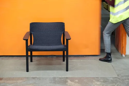 The classic wooden frame provides a stable and sustainable chassis, while the stretched 3D knitted textile in the seat and back create a soft and comfortable surface to sit on. Because EFG aims for all of the synthetic materials it uses to be recyclable, 100% recyclable polyester is used in Evo.
