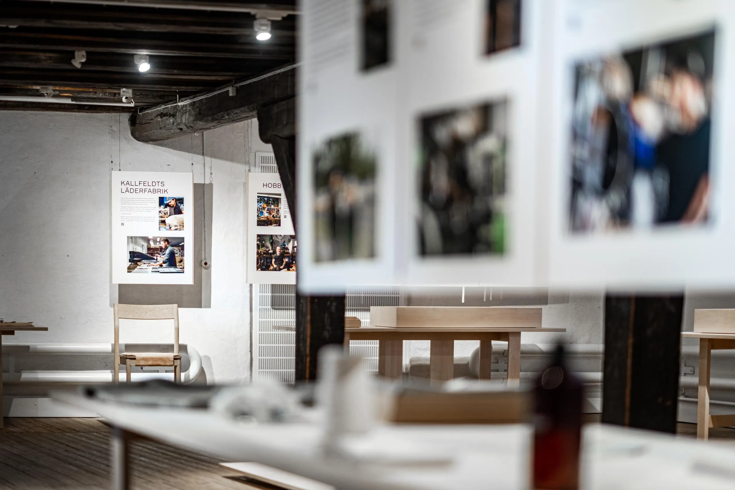 Both the furniture manufacturer VERK and the clothing brand A NEW SWEDEN only use Swedish materials that, through local production, become products of the highest quality. The exhibition highlights suppliers of the raw materials such as wool, leather, glass, wood and steel, as well as craftsmen and manufacturers of the actual products.