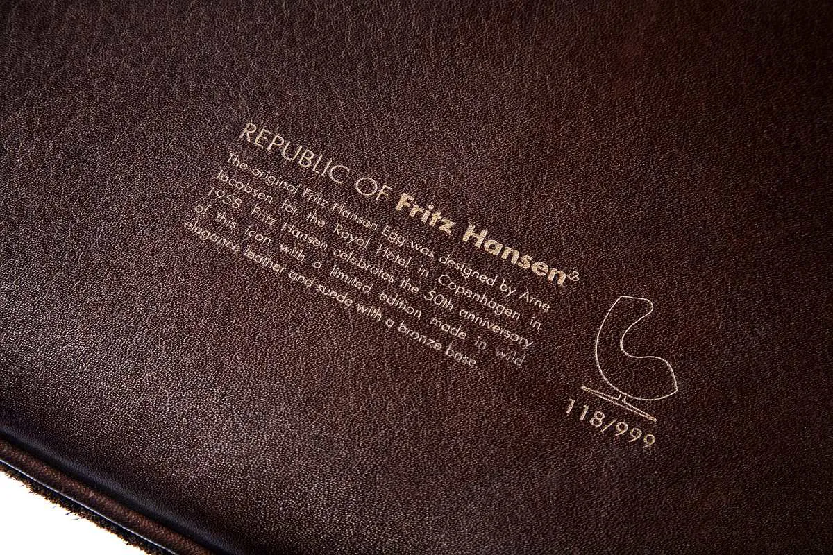 Each of the 999 Eggs will be individually engraved, under the seat cushion, with a unique number and a brief text about the history and origin of the Egg chair design. A special, limited edition 50th anniversary book will also accompany the chair.