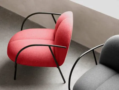 A very charming chair that brings a smile to your face. The Half & Half chair by Iskos catches the eye with an interesting shape, which is accentuated by the elegantly rounded arm-rests and the division of the fabric in the middle of the seat.