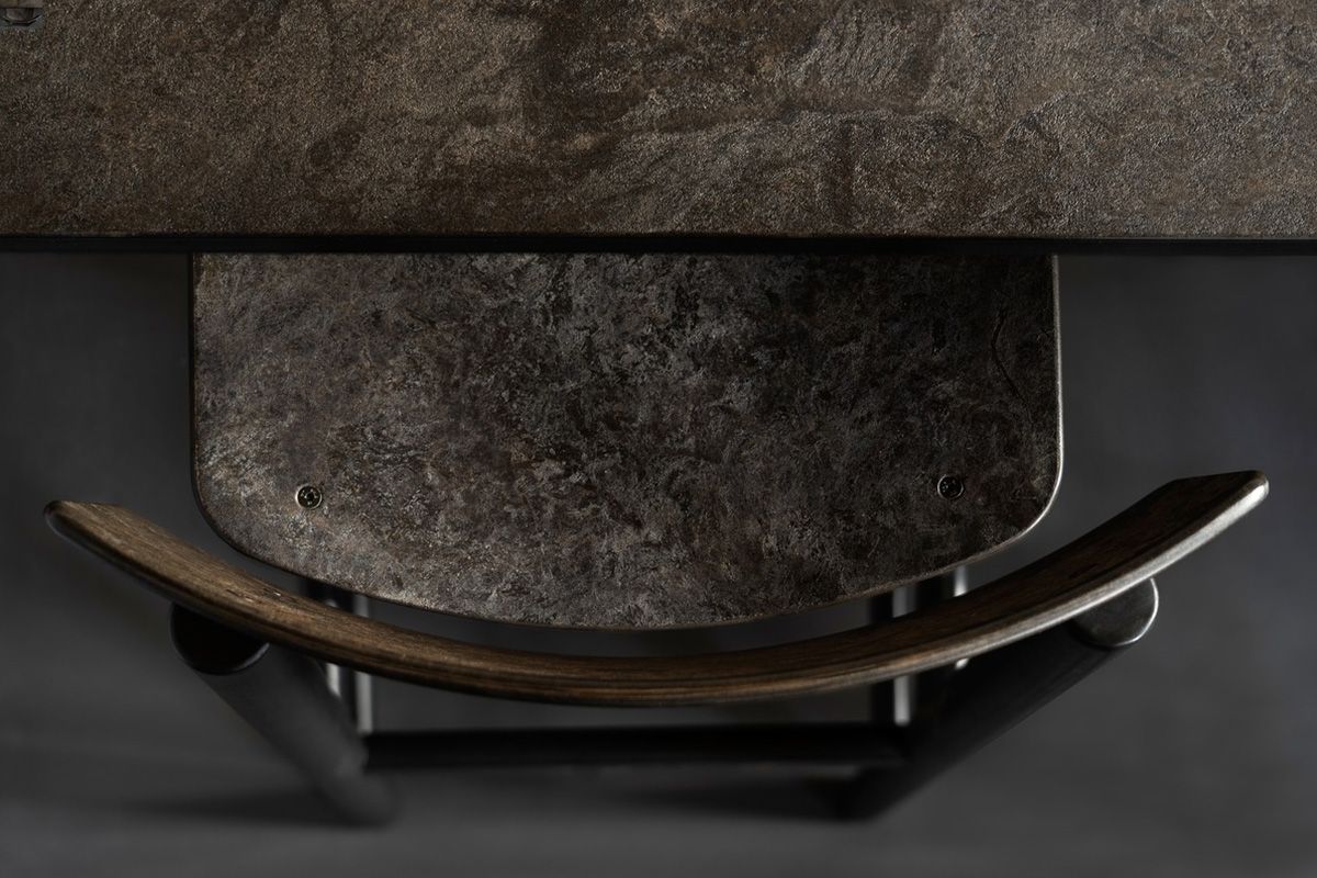 The seat and the backrest of the new chair are made from upcycled fibre-based waste materials and plastic waste mixed with sawdust from the FSC wooden base of the chair, in short, Mater Circular Material. Mater has developed this innovative technology for press moulding many kinds of furniture. The technique allows efficient upcycling of industrial waste and, at the same time, reduces carbon emissions. For this collection, industrial waste from Grohe and BKI Kaffe get mixed with sawdust.