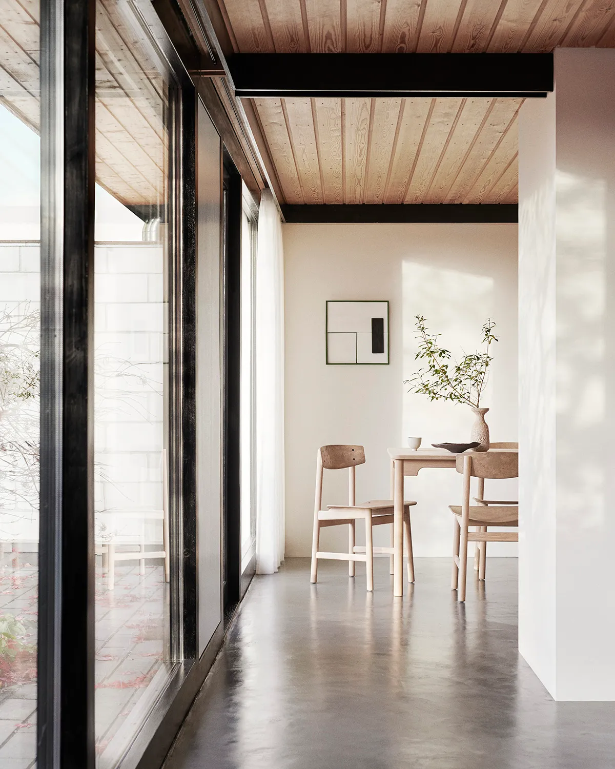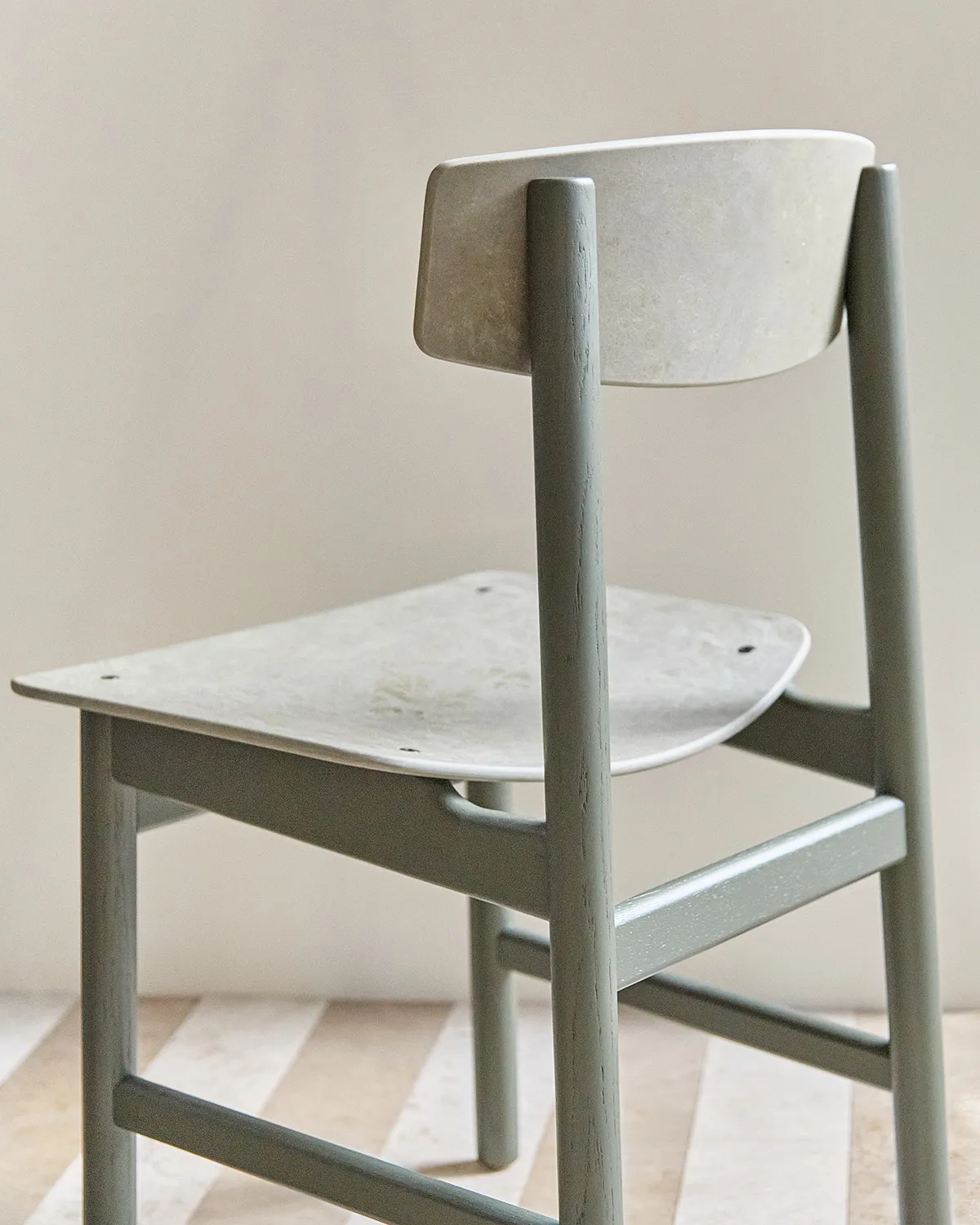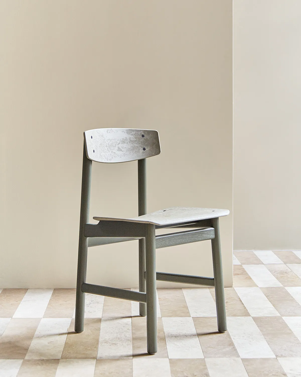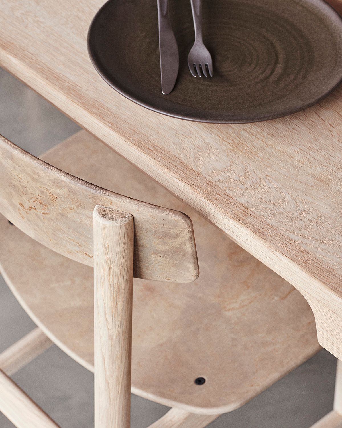 Mater is launching a collection of chairs and tables designed in 1958 by the renowned Danish furniture designer and architect Børge Mogensen. It is the first time a collection from Børge Mogensen relaunches in a different material than the original. A new sustainable and circular material made from waste and developed by Mater forms the seat and backrest of the chair.