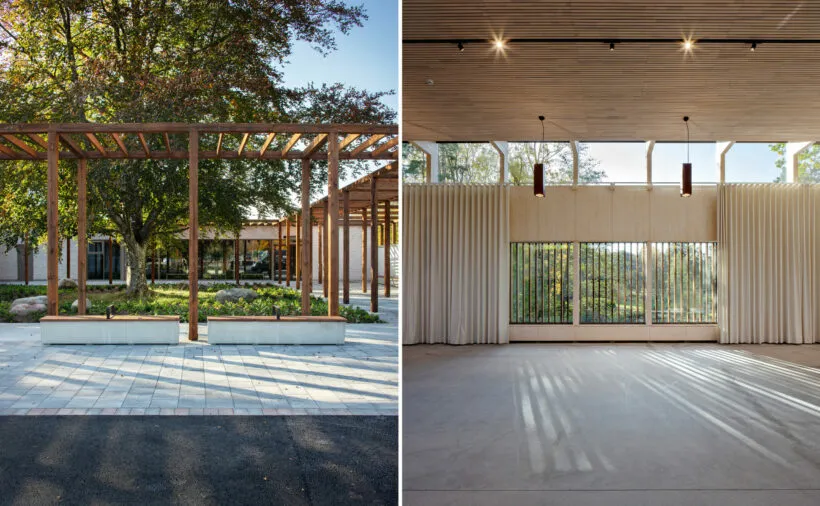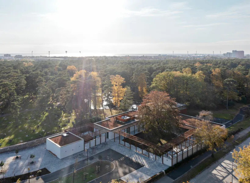 The 1st of November marks the inauguration of Skogskapellet – a new, faith-neutral ceremonial building for the parish of Falkenberg, nestled within the natural landscape of Skogskyrkogården. Designed with a sensitive approach to the spirit of the place, this new structure provides visitors, loved ones, and staff with a space for tranquillity and reflection, featuring a palette of materials that feels earthy and grounded within the surrounding landscape.