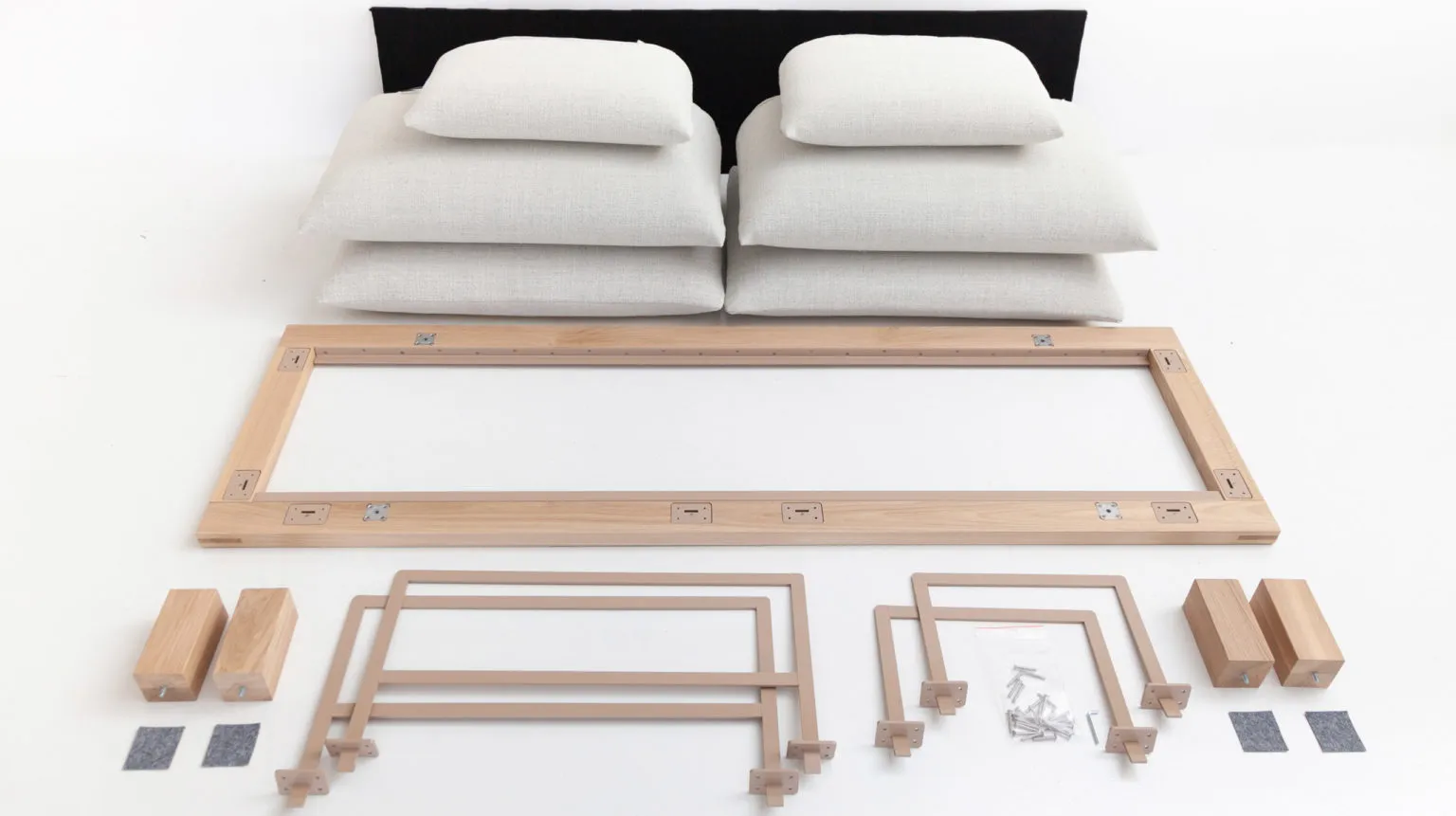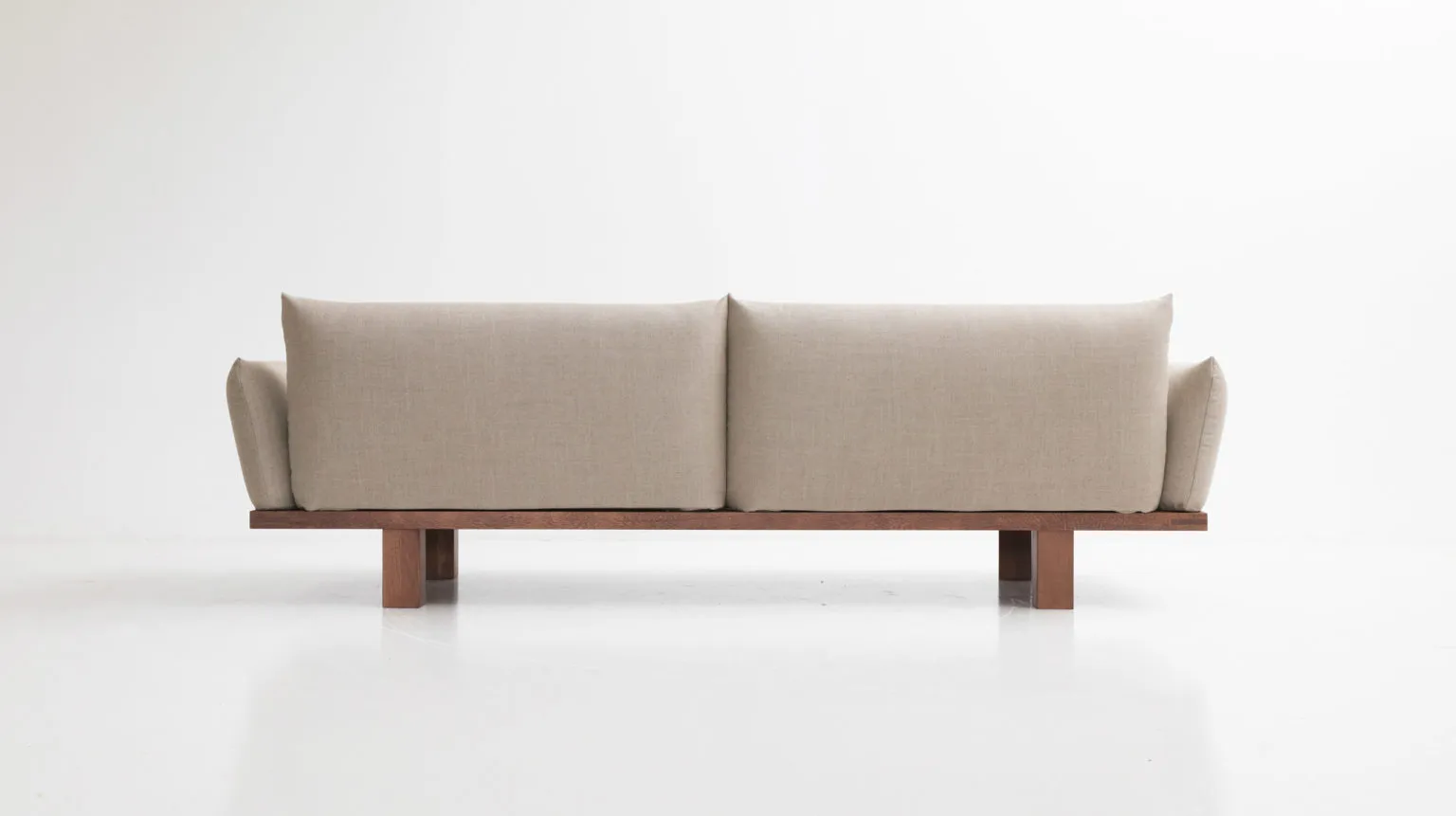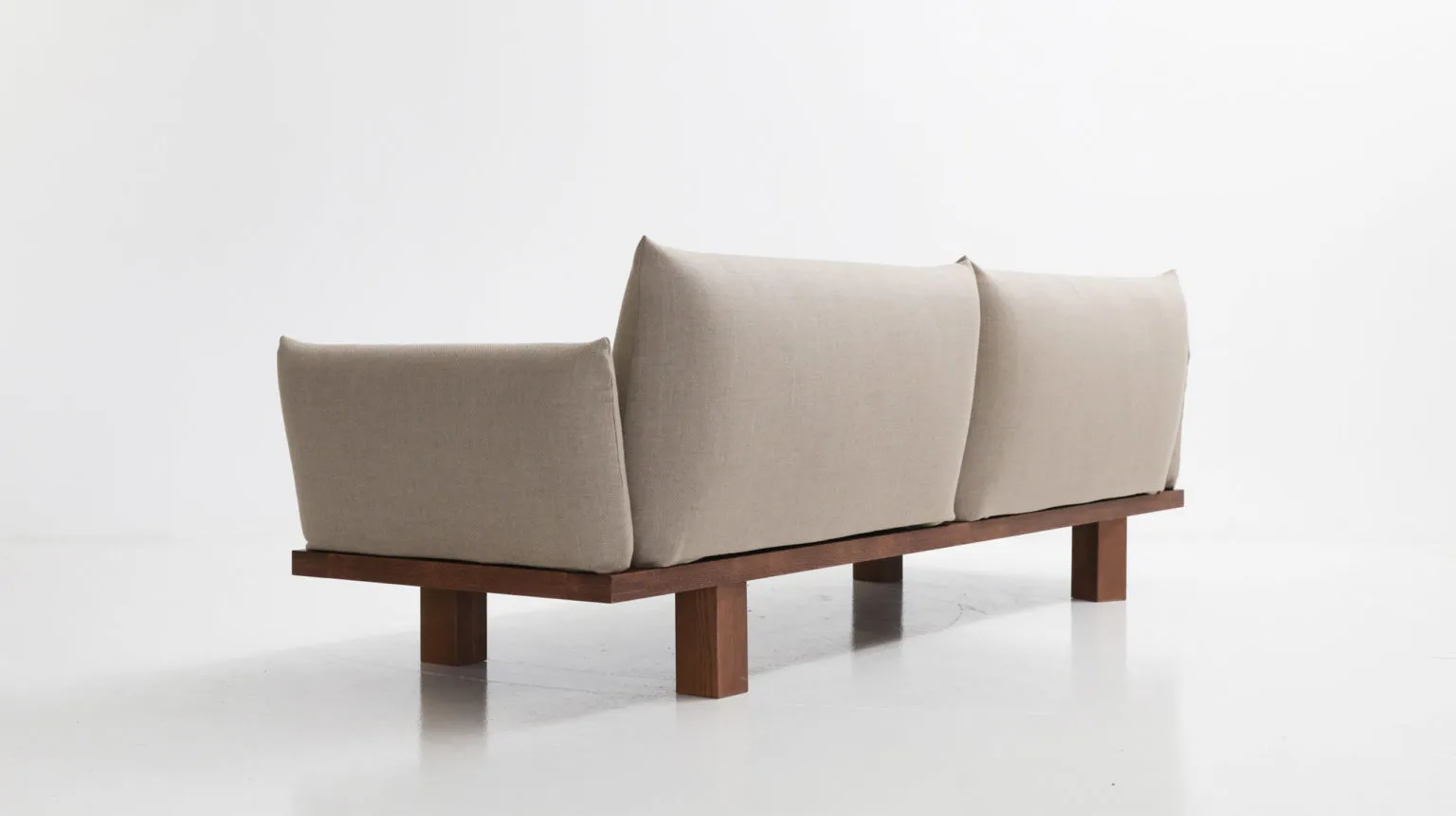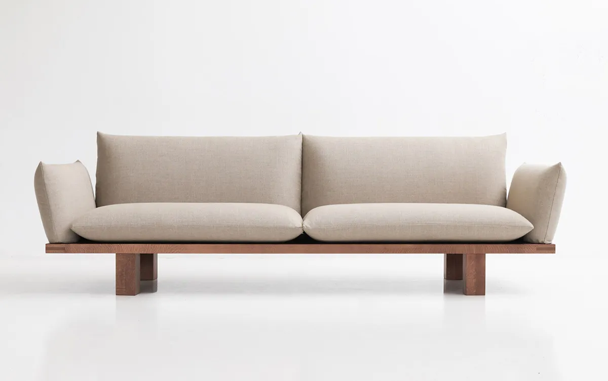 And the solution was: a simple wooden frame that serves as the ‘backbone’ of the entire sofa, both aesthetically and functionally. This frame is deliberately visible from all angles, acting as a pedestal for the soft cushions. All auxiliary components securely anchor to this primary structure.