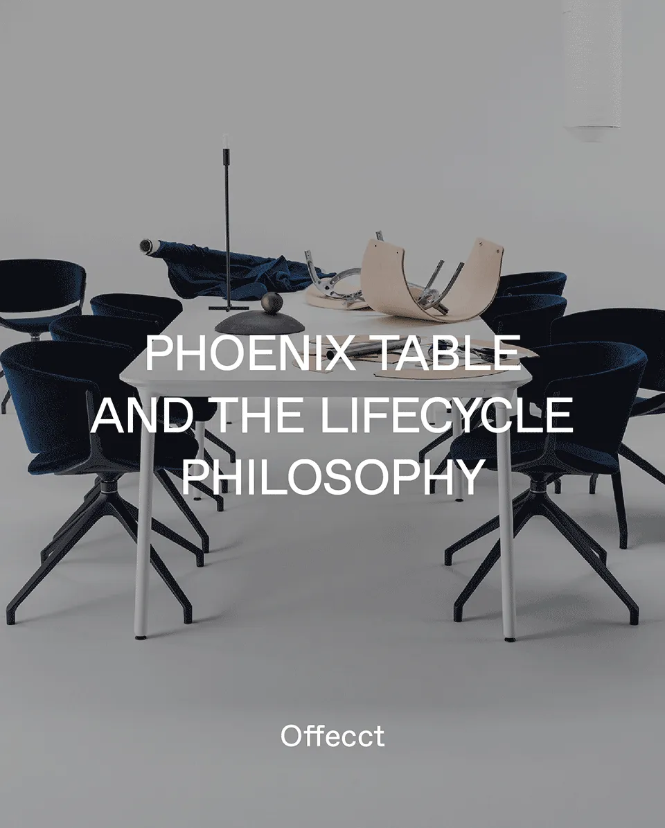 “Phoenix is a success story in every way – for our holistic sustainability philosophy, design vision and in terms of sales. Therefore, it was natural that we continued to work with Luca to also develop a table in the same spirit as the chair,” says Maria Olofsson Karemyr, Brand Manager at Offecct. The Phoenix table has a slender shape that captures the expressions of the chair in a distinct but subtle way. The length is flexible and can be adjusted by adding extra inserts.