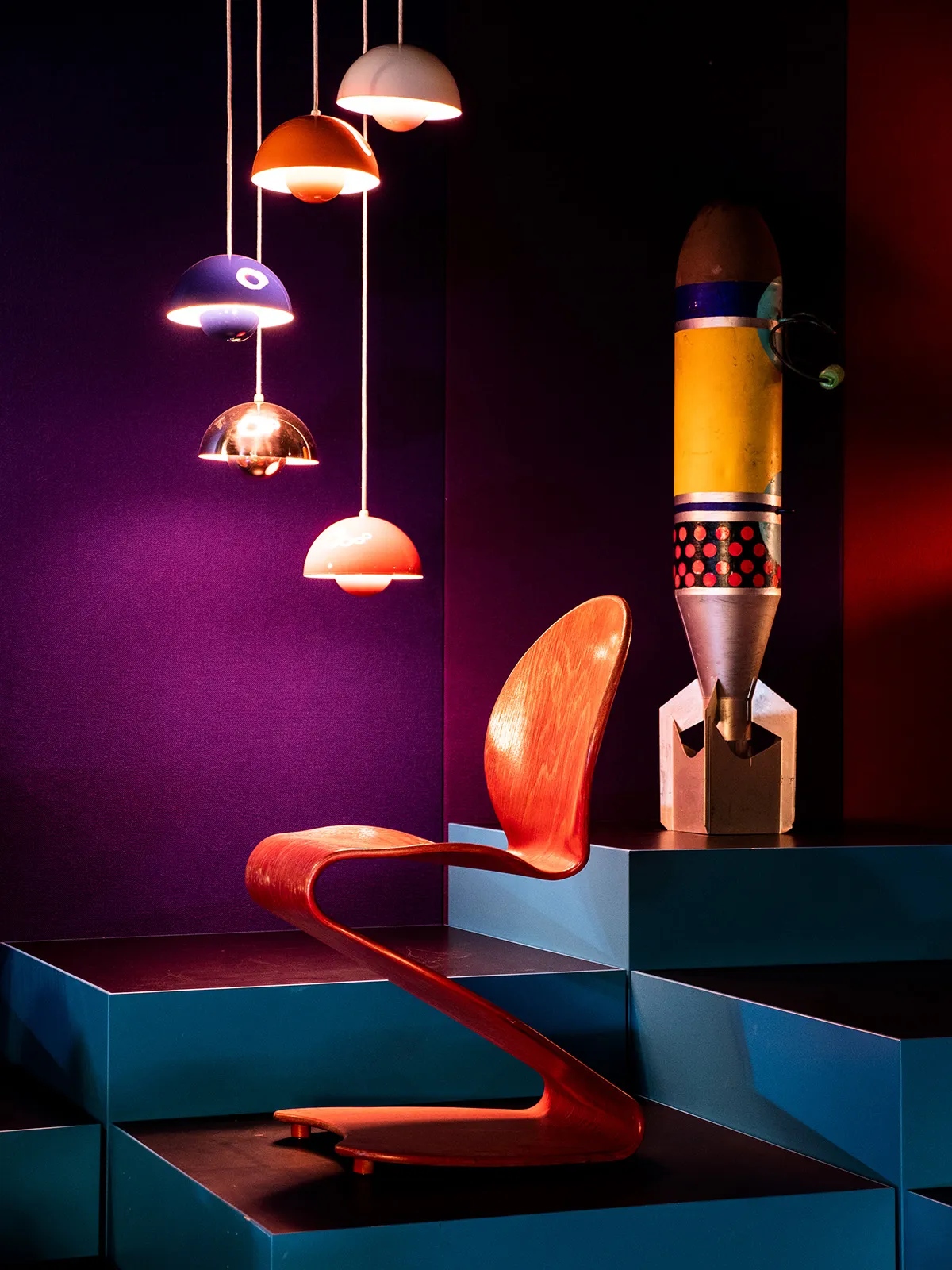 The exhibition themes follow the historical development from around 1900 to now. However, each theme also includes examples from other periods. This is because the themes represent universal form approaches that were manifested in modernism and laid the foundation of today’s design.
