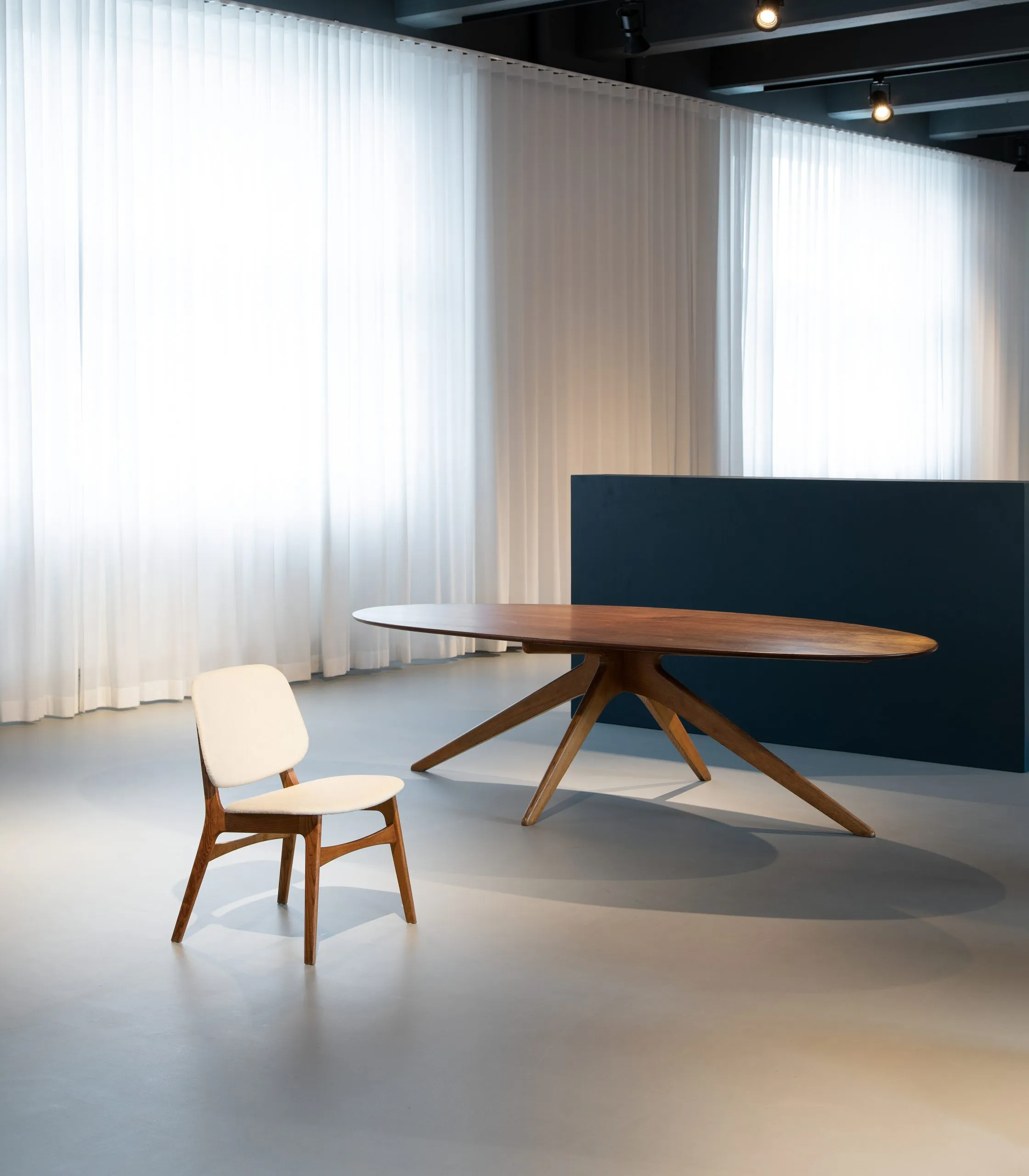 As the new ideas of Functionalism swept through the Western world in the 1920s, the late industrialized Denmark adapted to the values of the workshop, causing a renewal and extension of the cabinetmaking tradition, rather than an industrial turn. As a result, the dedication to craftsmanship and devotion to materials remained intact in Danish furniture making even as times were changing and new idioms were introduced. However, the cabinetmaking profession was threatened, as the industrialization of the 1920s caused an increased import of cheap, mass-produced furniture. Innovation was needed and a group of visionary master cabinetmakers from the Copenhagen Cabinetmaker’s Guild opted for cooperation with architects and the students of Kaare Klint’s Department of Furniture Design at The Royal Academy of Fine Arts. They decided to host an annual exhibition that encouraged architects and furniture designers to develop new designs conceived for the cabinetmakers’ workshops. Thus, the foundation was laid for the Danish symbiosis of design and craftsmanship.