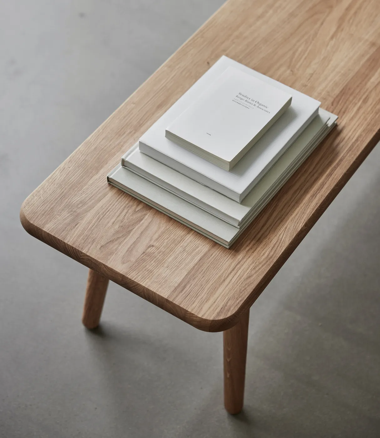 A bench that has the same soft shape as the table.