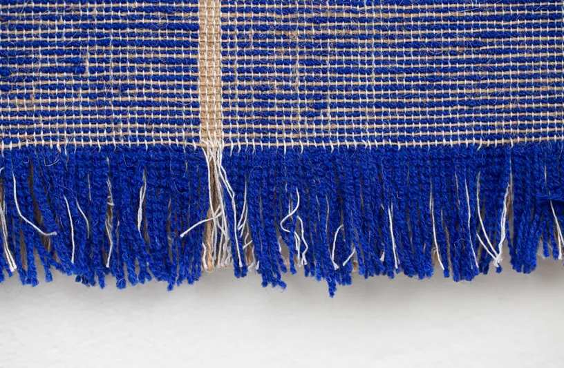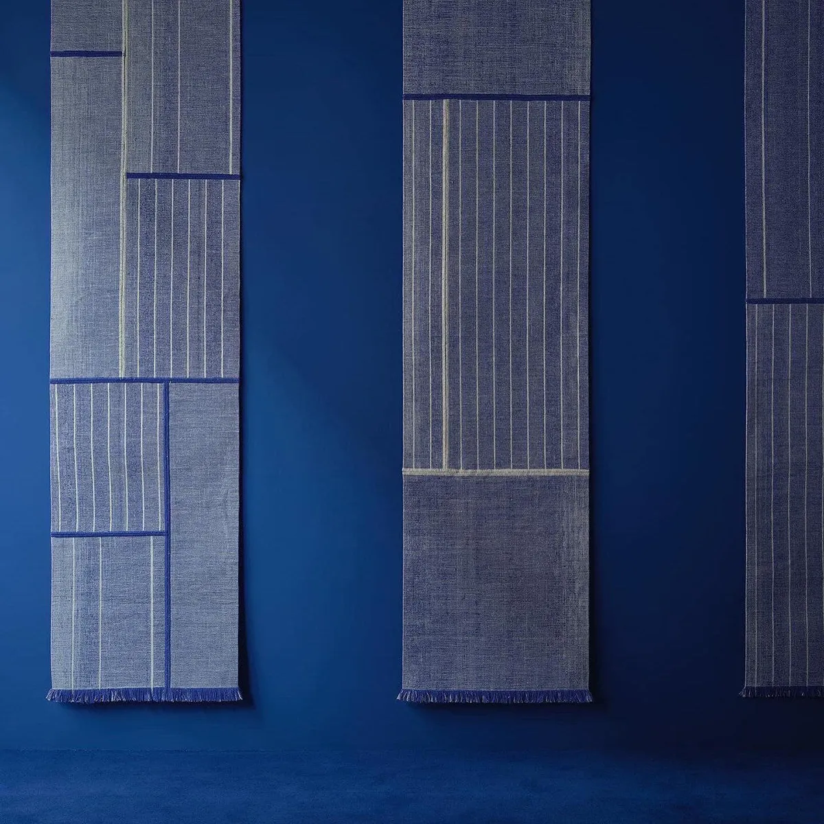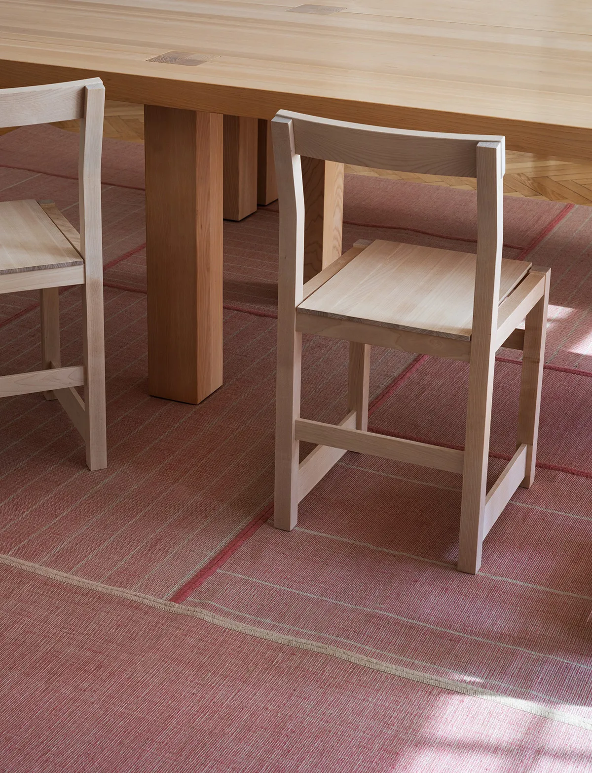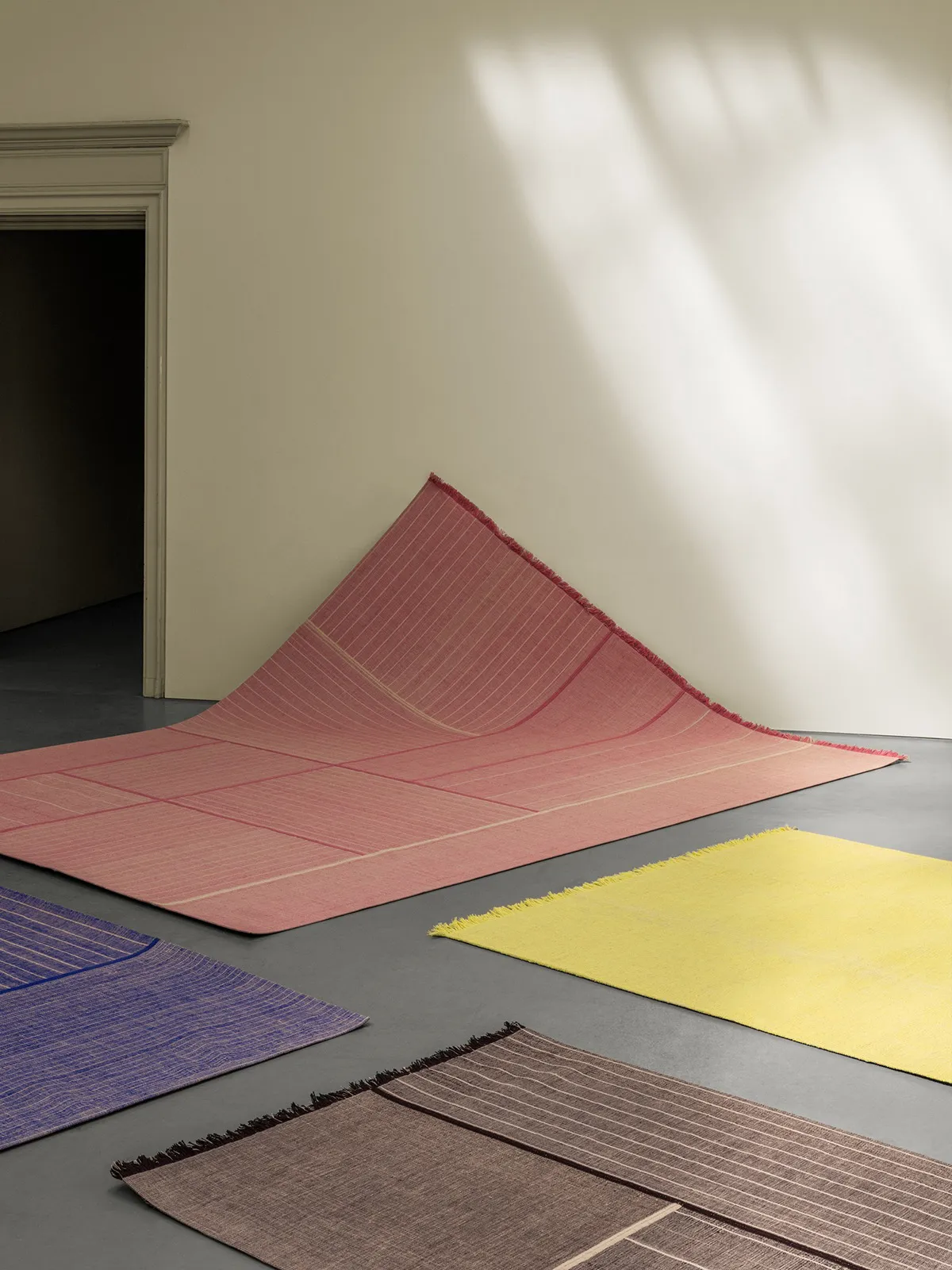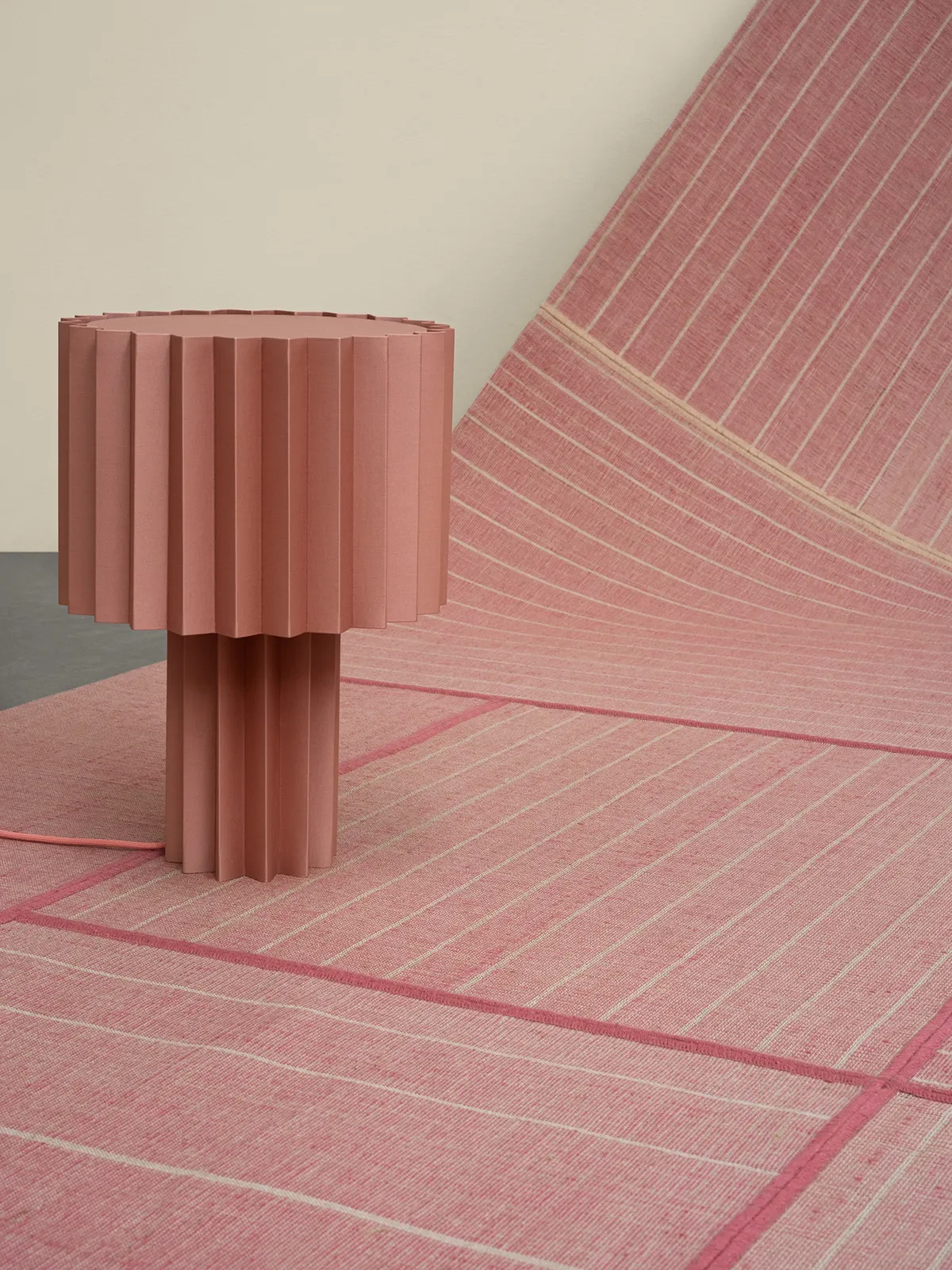 Folkform creates objects that challenge traditional manufacturing techniques. Their pieces are inspired by the Wilton rug, a type of woven textile developed in 18th century England, which uses a single backing woven around the pile yarn. This blurring of boundaries is particularly suited to a series of works that can be used as floor pieces or wall decorations, with no distinction between the two uses.