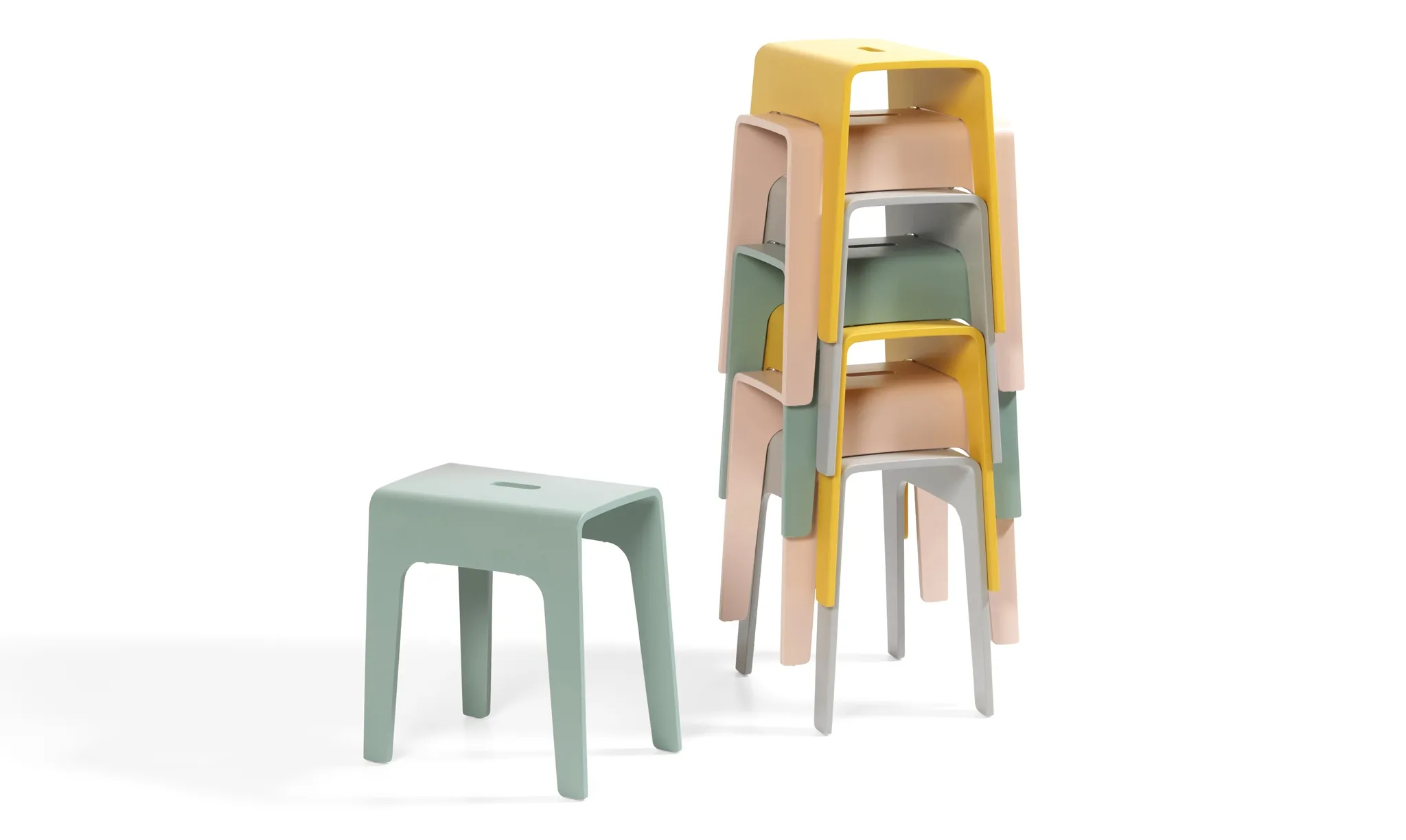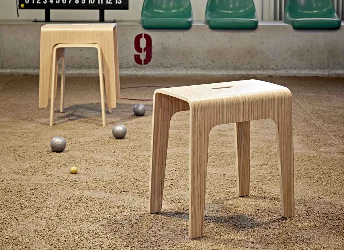 A stool is a tool! Bimbo is a stackable stool made of compression moulded wood. A cut out hole as a handle makes the stool easy to move around. Bimbo can be used almost anywhere one needs a temporary little place to sit or something to balance a foot on when one can´t quite reach and, of course, as a movable small table.