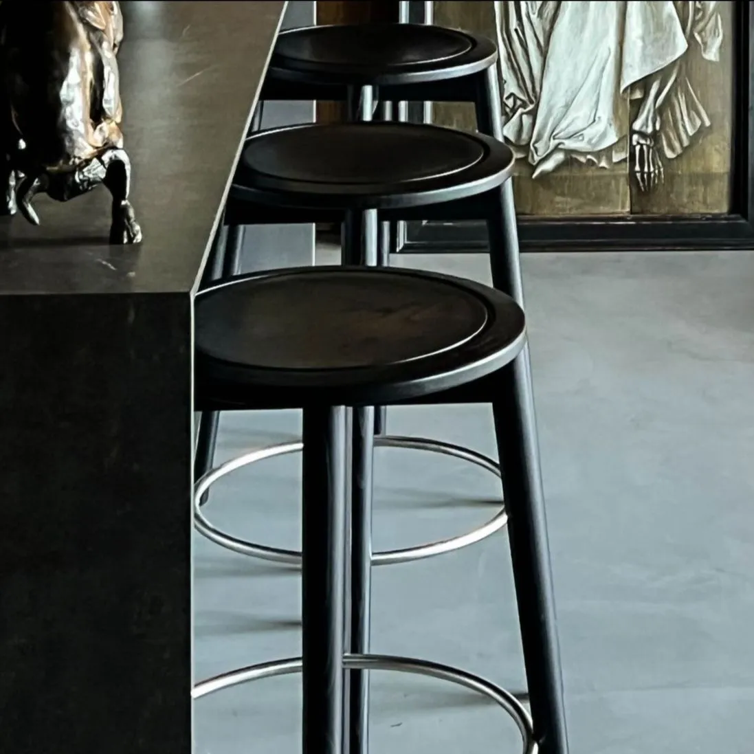 The bar stool is the latest addition to the Tranquebar Series. The design language combines geometric lines to create a minimal silhouette with an assured presence. Designed in Copenhagen by Boris Berlin and crafted in the EU from renewable FSC certified Ash, the Bar stool comes in a water-based black stain with a satin finish and a stainless steel foot rest.