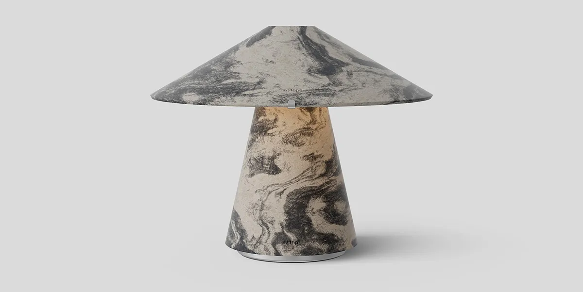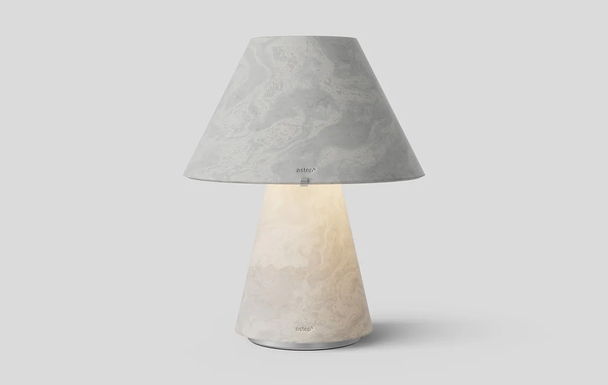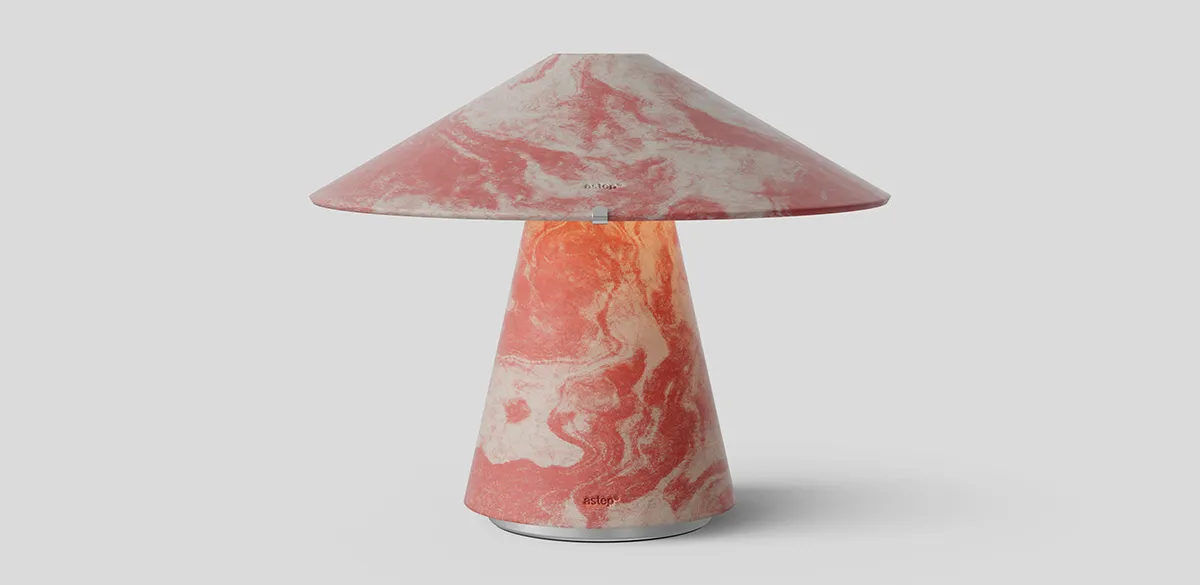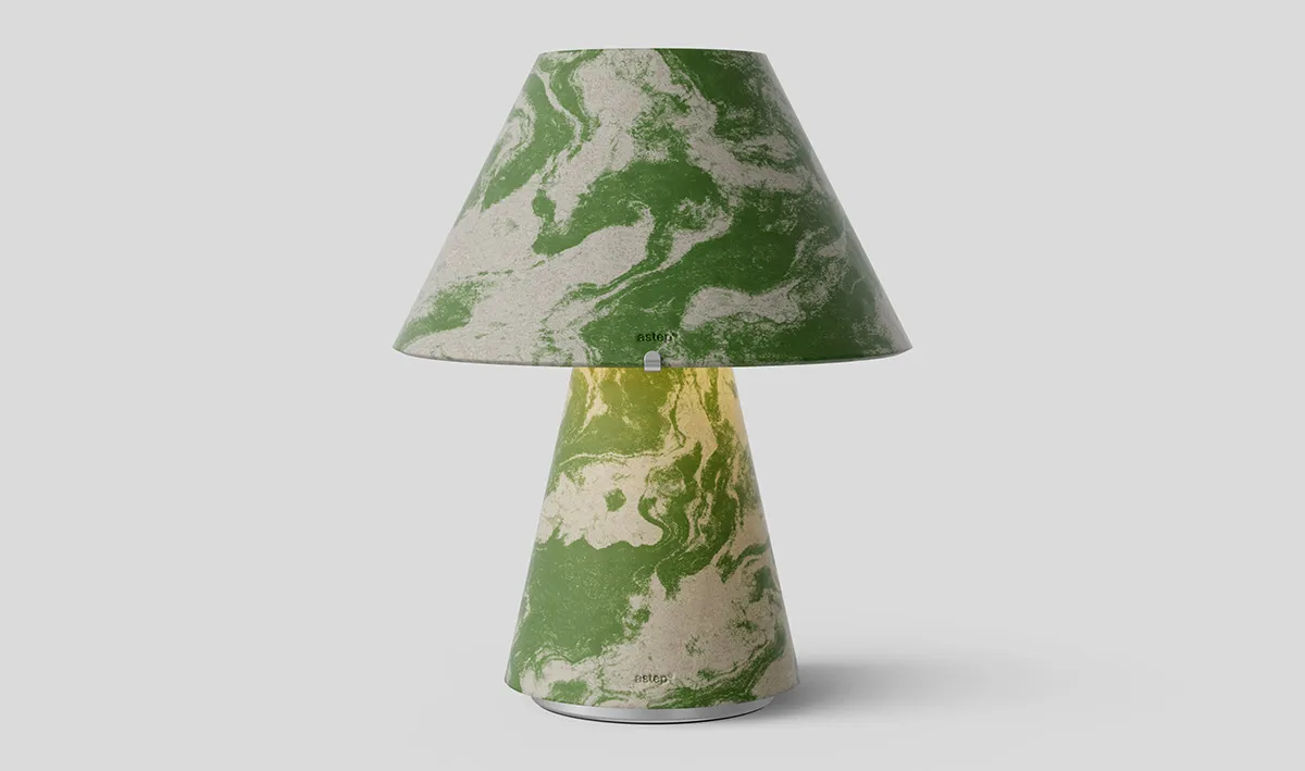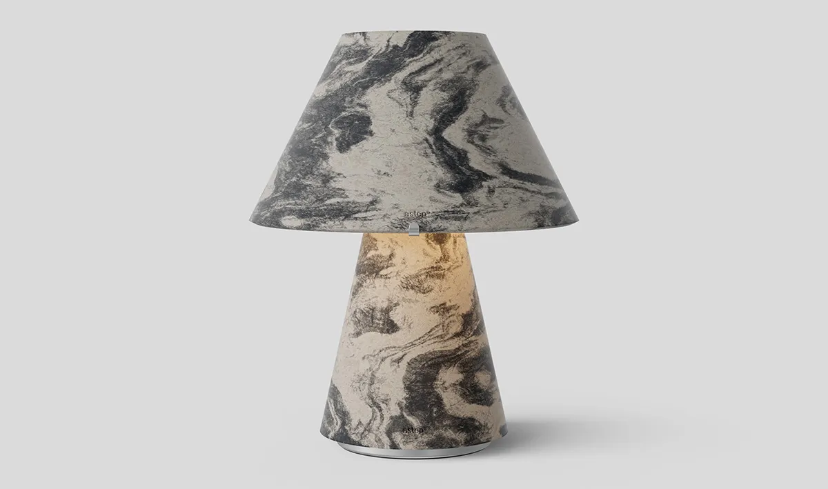 For the initial launch of Upglas, the focus is on table lamps in two different shapes, available in four colour versions. Each one is duo-toned to accentuate the uniqueness of the material and its unpredictable patterns. Carefully selected by Astep with Luca Nichetto, the four colourways will include a black on white variant, a white on light grey, a green on light grey, and a warmer tonality in red on light grey.