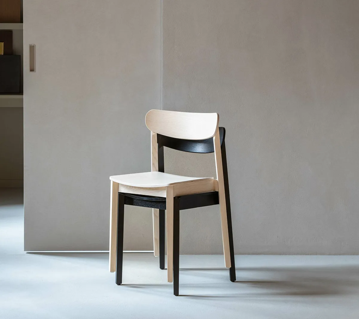Stackable Taverna peg chair by Sami Kallio featuring classic construction with modern design elements