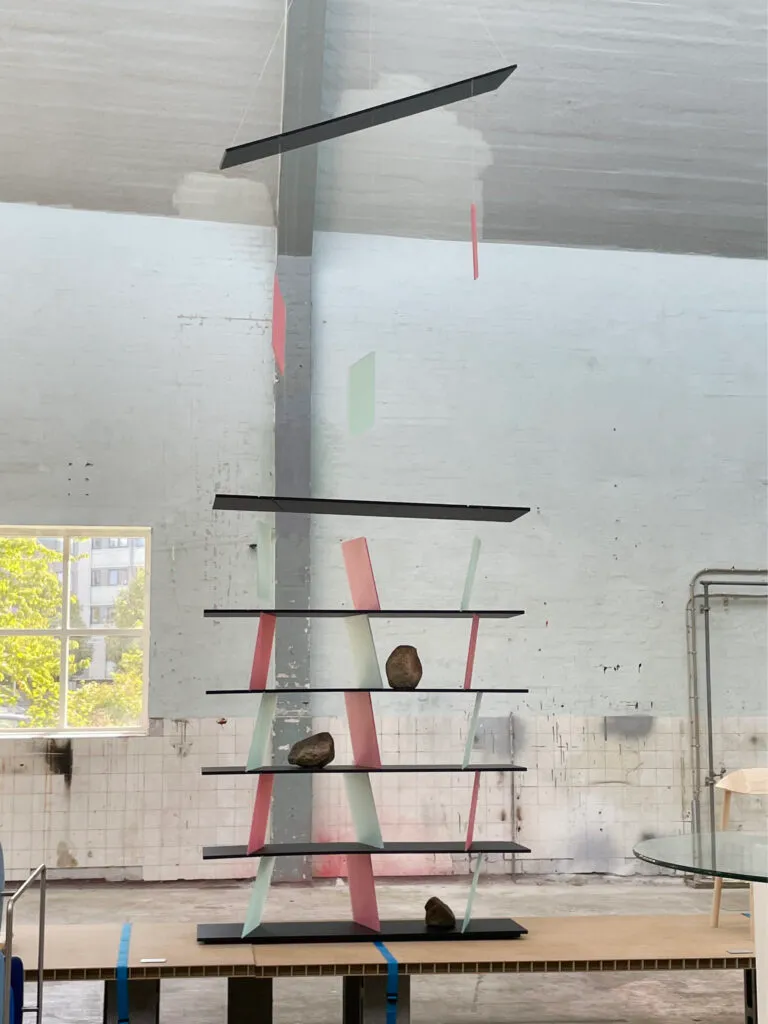 The Oblique shelving is Boris Berlin Design’s contribution to this year’s edition of the Cabinetmakers Autumn Exhibition. It is factory-produced exclusively from 100% Green Cast recycled acrylic plates, with no waste or use of any other materials. The production takes place in a single industrial process using 5-axis CNC milling, ensuring both efficiency and sustainability.