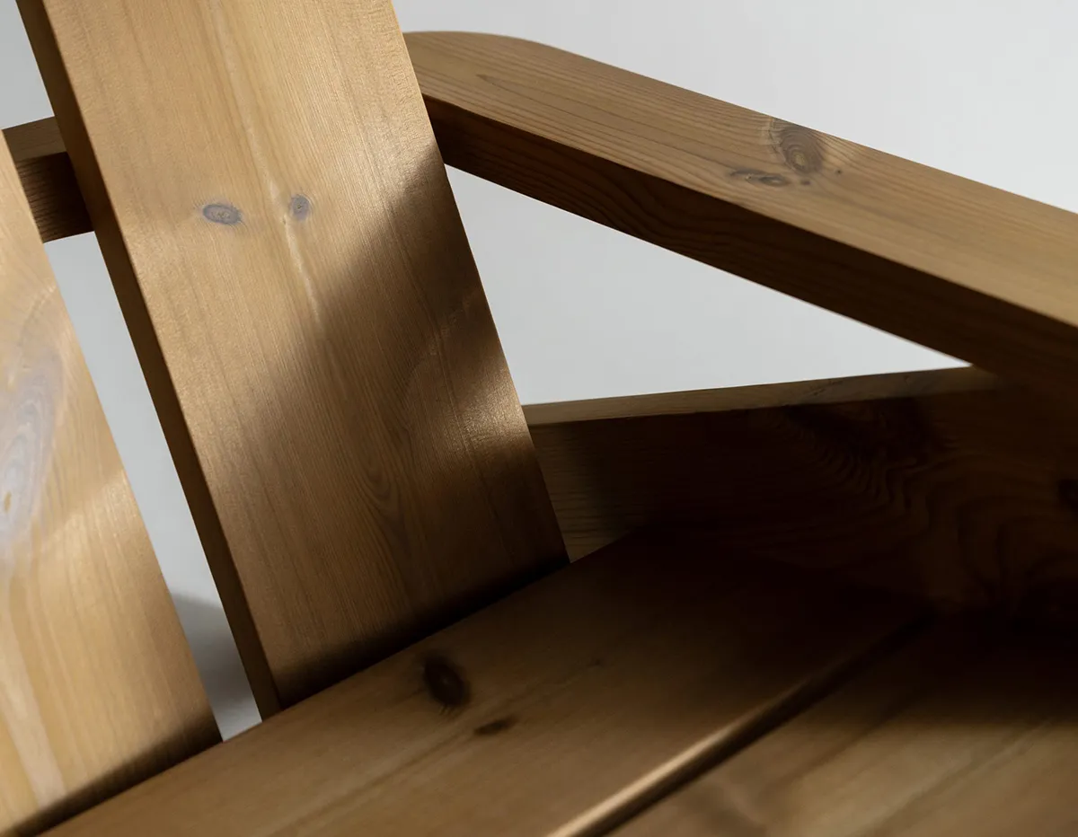 The Peace Chair nods to archetypal Adirondack chairs of the past. But it is the generous use of weather resistant heat-treated pine and its timeless profile that gives Peace its longevity. Peace is destined for a special position under open skies. There it can slowly and beautifully age, remaining a permanent and dependable refuge for generations to come.