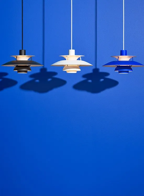 This autumn, Louis Poulsen introduces Poul Henningsen’s iconic PH 5 pendant from 1958 and PH 5 Mini, its downscaled successor, in a monochrome palette. The new PH 5 colour series captures the timeless versatility of monochrome Black, White and Blue, reimagining Henningsen’s classic design and colour spectrum with a minimalistic, modern look that harnesses the benefits of state-of-the-art lighting technology.