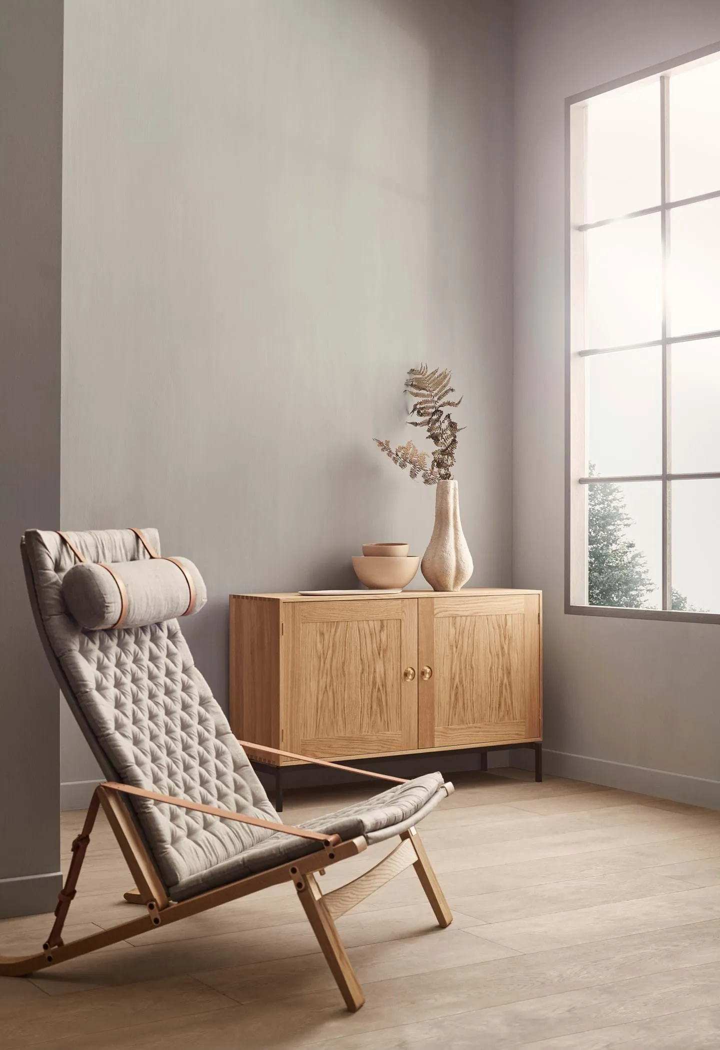 Simple in form yet filled with delightful details, the Plico chair is a rare example of great design that neither compromises on comfort nor aesthetics. Imagined by the Danish designer duo Fabricius Kastholm, masters at creating honest design that beautifully highlights what others often seek to hide, the foldable lounge chair takes up as little space as possible when not in use, while offering supreme sitting comfort by virtue of its soft upholstery and adjustable backrest.