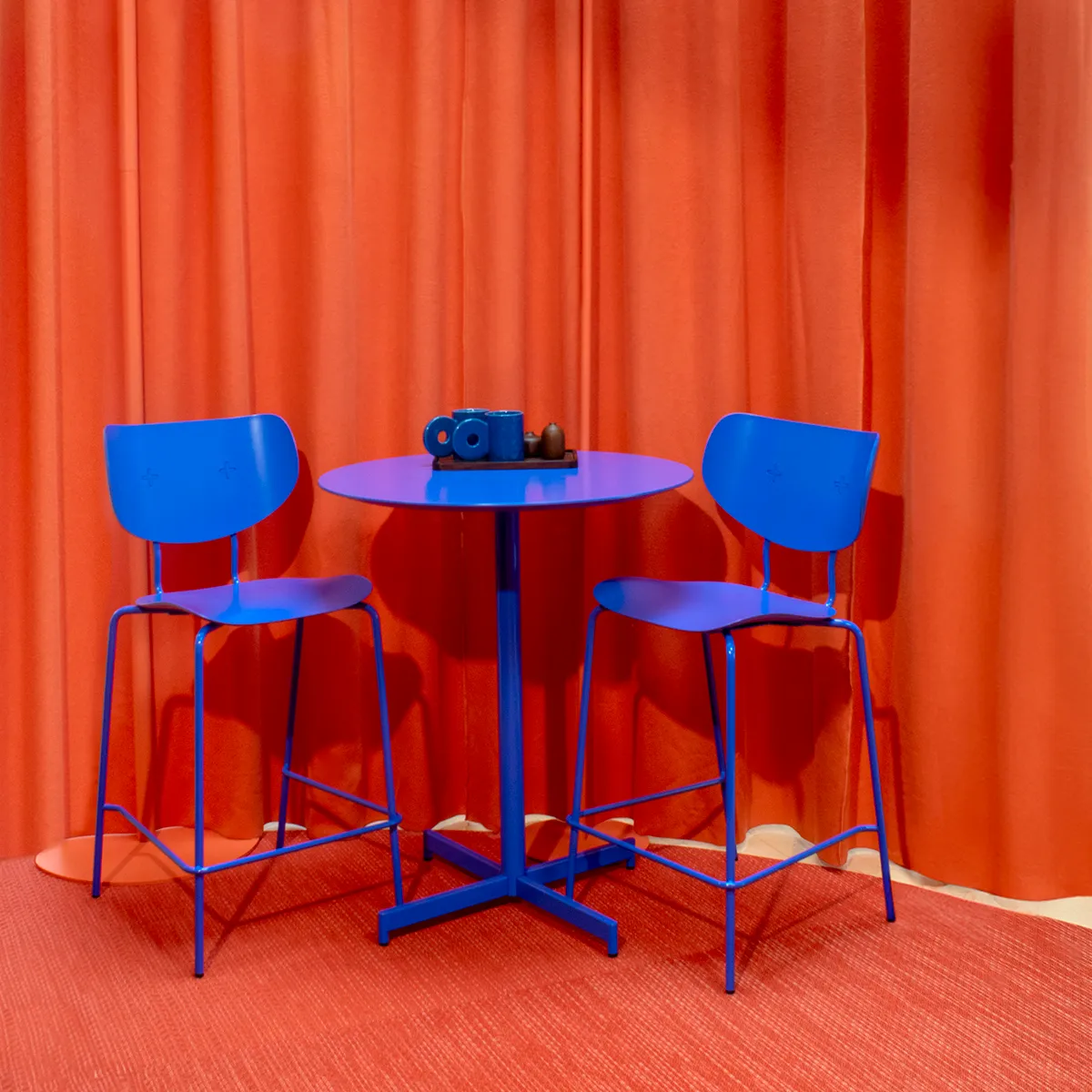 The stackable chair made from recycled plastic is now also available as a bar stool, along with an accompanying table series.