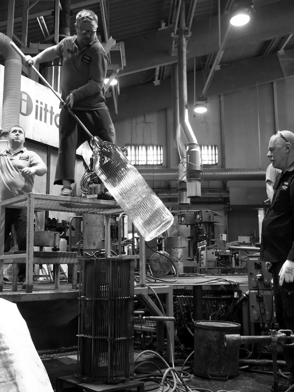 The Iittala Cup takes place every second year in the company’s factory and could be described as the unofficial world championships in glass blowing. The best craftsmen from Finland and abroad compete each in three tasks: biggest ball, widest plate and longest cylinder blown in a mold. All accompanied by a cheering enthusiastic crowd filling the stands of the hot shop.