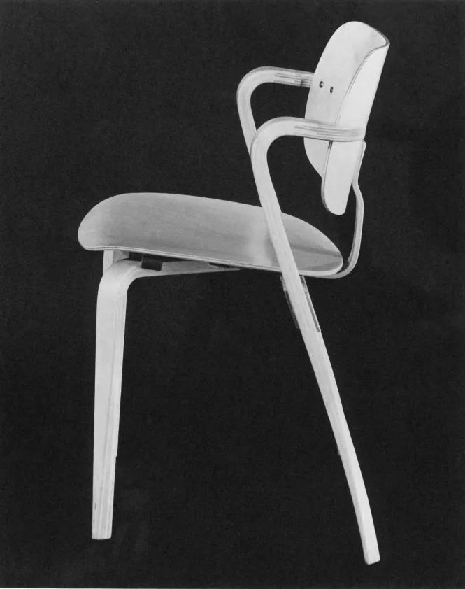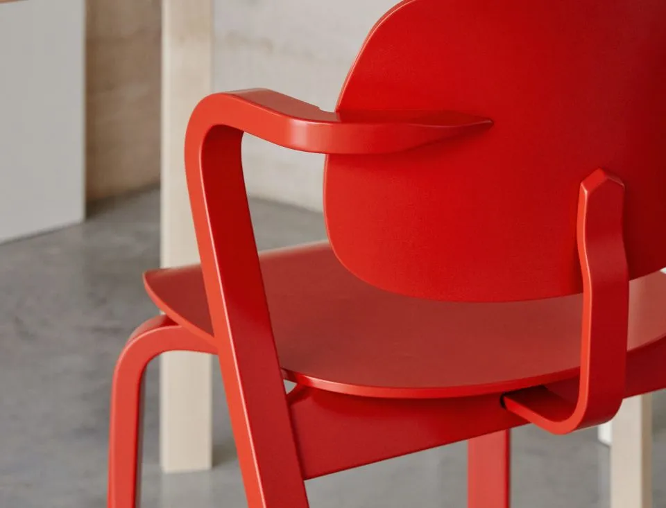 When Tapiovaara designed the Domus Chair in 1946, he wanted to produce a chair where the back, leg and armrest were made from one continuous piece of wood. At the time, production facilities weren’t capable of matching the vision laid out in his drawings, so Domus was made of separate pieces of solid birch wood. Later Tapiovaara sketched the Aslak Chair for Schauman, a Finnish company who were among the world’s biggest producers of plywood. Finally, it became possible to cut the pieces for the back legs and armrest out of one huge sheet of plywood and, in 1958, advances in technology meant Tapiovaara could achieve what he had hoped to do 12 years earlier. In that sense Aslak Chair can be regarded as an improvement on Domus, in terms of the production methods used to create it and the fact that each armrest continues to become a leg without a constructional or visual break.