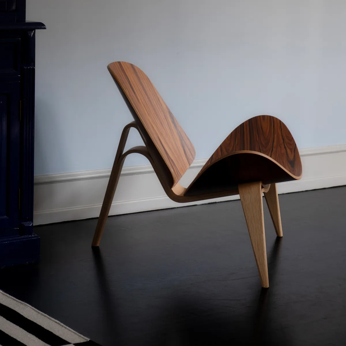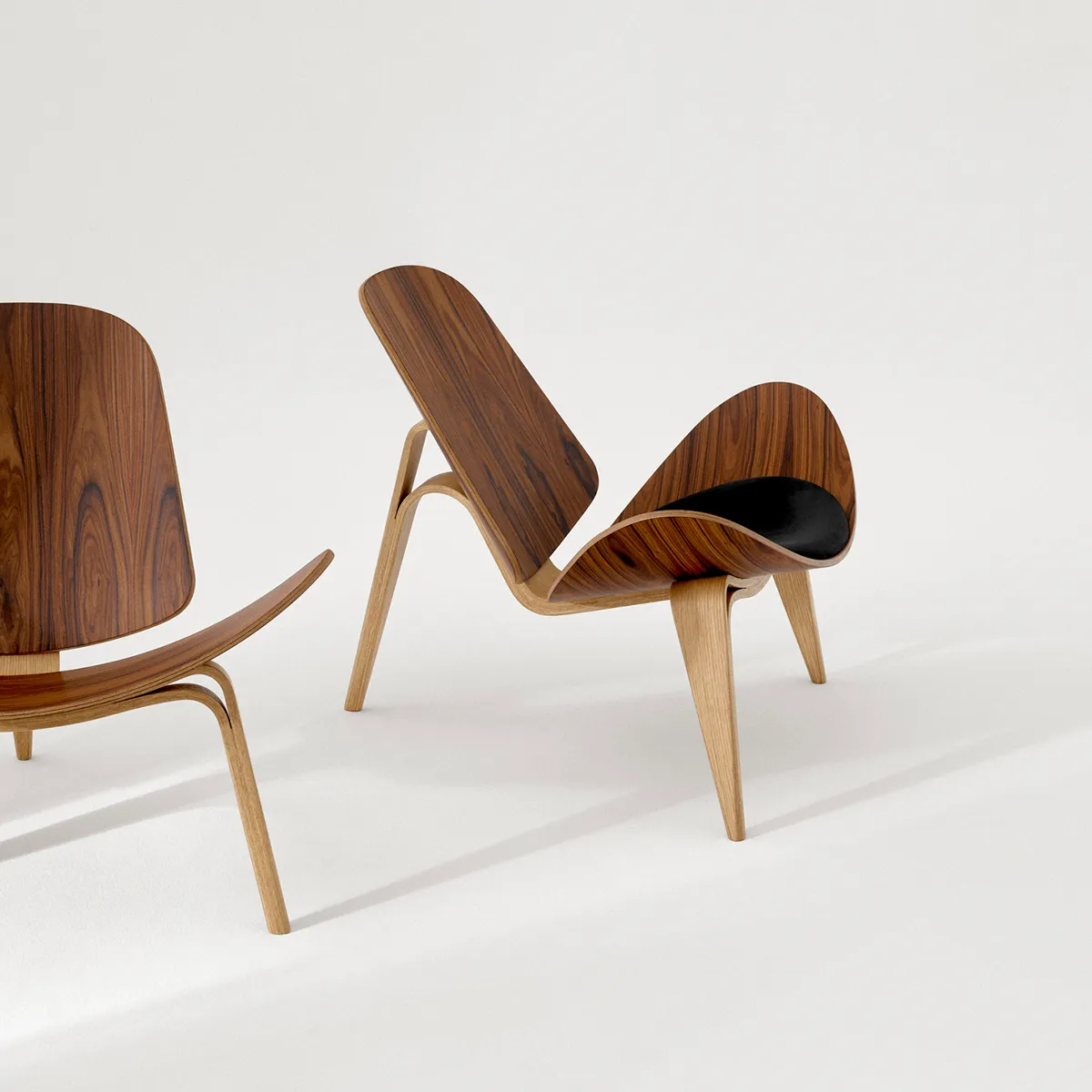 In 2023, Carl Hansen & Son will celebrate the Shell Chair’s 60th anniversary with an exclusive edition made of rosewood and oak. Customers can also choose to add a seat upholstered from black, matt aniline leather from organically raised Danish cattle.
