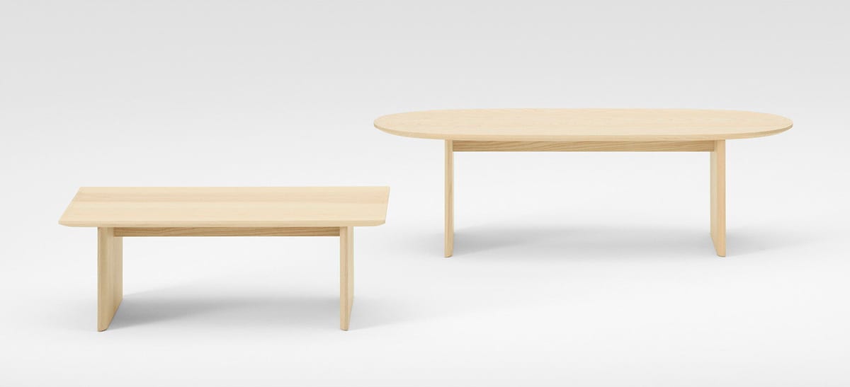 In common all tables have the oval shape and the crafted tray-like detail of the wooden tabletop and the strong wish to create an understated design language. The precise detailing is crucial, smooth transitions from soft to straight, framing the architecture of the table, creating a tray-like surface.