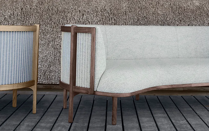 “Communication is being challenged by tablets and other digital equipment, so I wanted to make a sofa where it feels more natural for people to talk to each other,“ explains Rikke Frost, who goes on to say: “Many sofas require you to sit straight and turn your head to the side instead of turning to face each other. I wanted to create a sofa where you sit sideways as this encourages more natural conversation.”