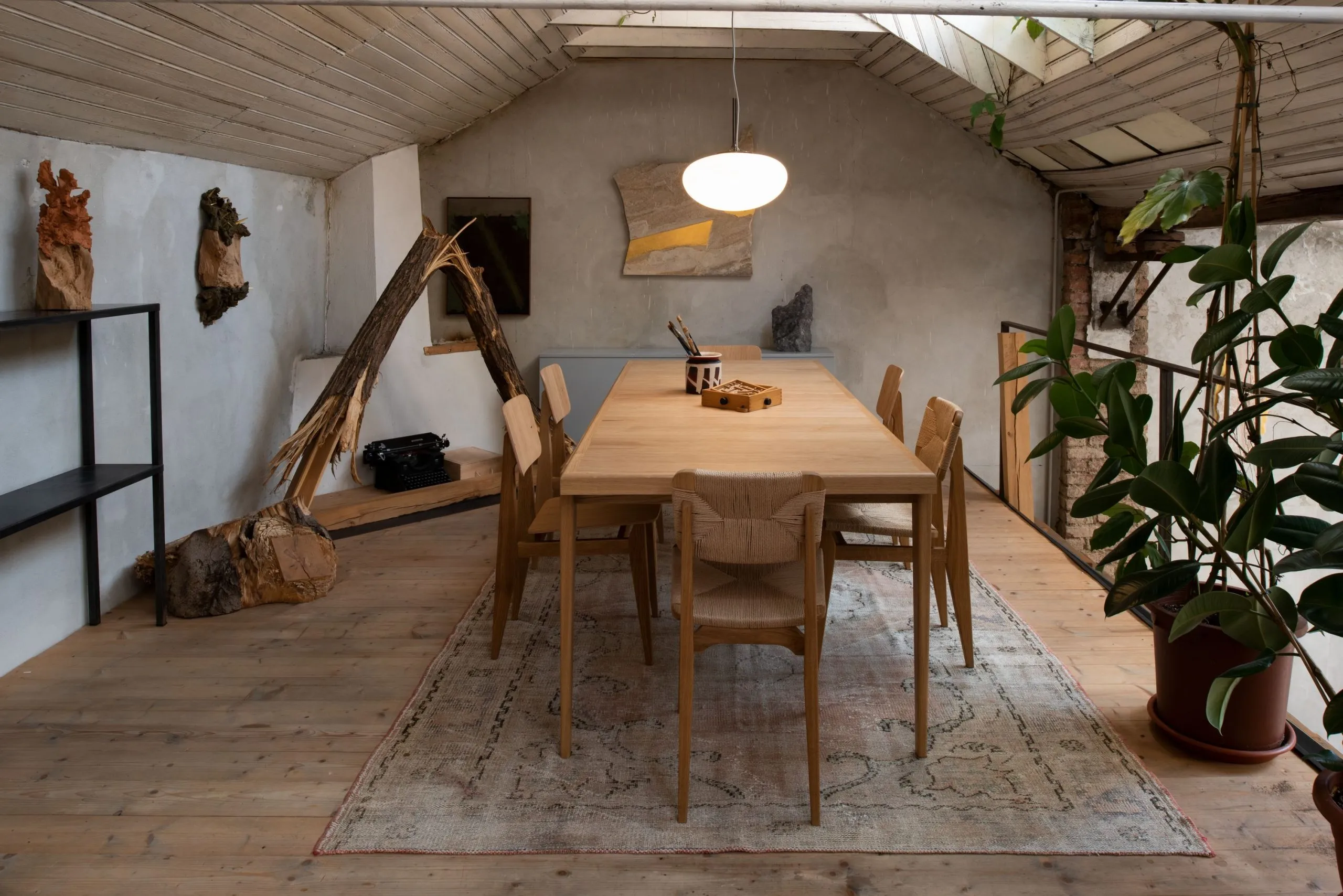 Underneath the globe is a simple rotary dimmer switch, giving intuitive control over the light intensity. The simple, slender, tulip-like stem is available in Black Chrome, Red Black, and Pebble Gray.