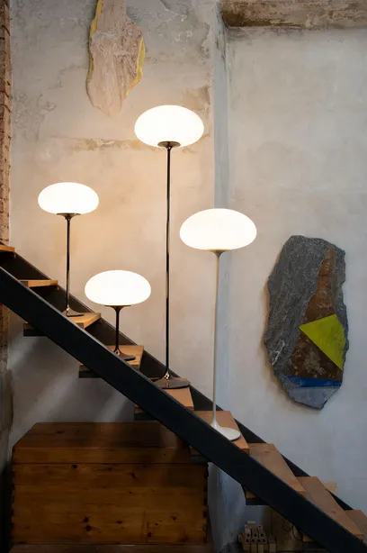 The Stemlite was the first ‘total look’ lamp, a pioneering new typology conceived by American Designer Bill Curry in 1962, which replaced the traditional base-plus-shade form with a single self-contained unit comprising interchangeable modules. Now remastered by GUBI after almost half a century, the new collection comprises two table lamps, two floor lamps and a pendant, in a contemporary yet authentic color palette.