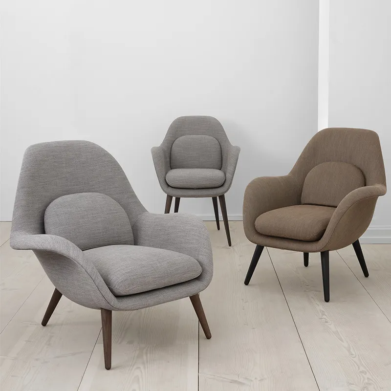 Look for the same casual take on elegance in the Swoon Lounge Petit. Slightly smaller in size, it features a high back designed at a more upright angle. The result is a chair that invites you to relax and unwind, while at the same time making it comfortable for conversations or working on your laptop. The armrests are ample in size and merge with the seat and back to form one entity that naturally fits the body. Enjoy the seat and back cushions, choice of wood base and you have numerous options for comfort in style.