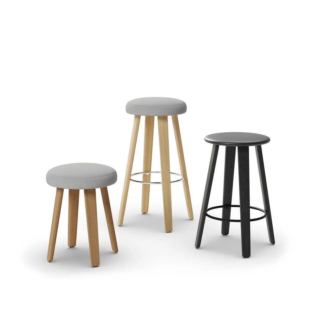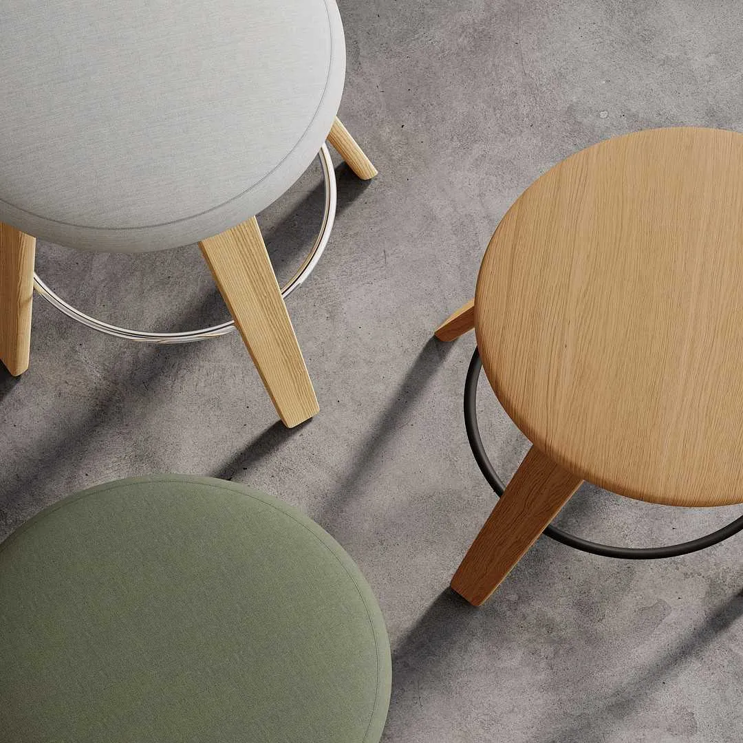 The sympathetic Oona stools are available with both a solid wood and a soft, all-upholstered seat. The solid wood legs follow the homely design language of the rest of the Oona product family. Stools are available in several different seat heights and fit naturally to a wide range of environments and need for use.