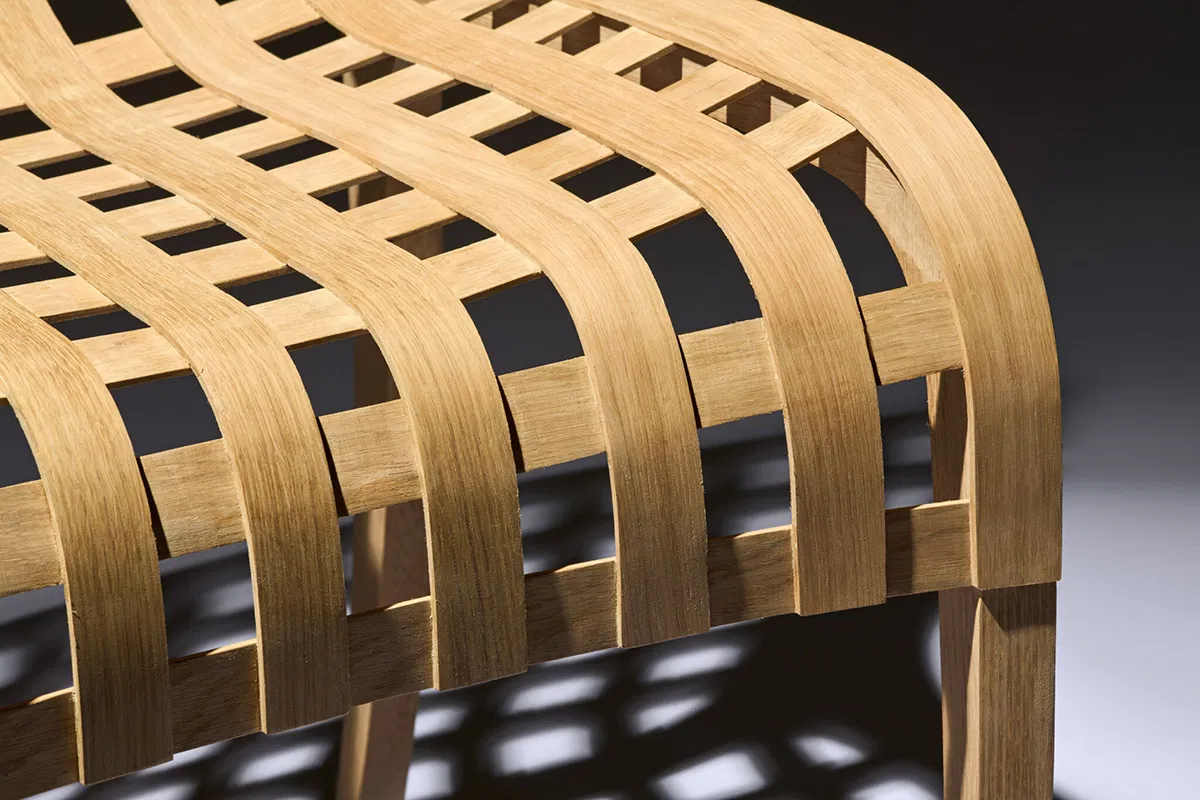 Evolution is the gradual development that is expressed in the X Chair. The core challenge was to redefine the lightweight chair type and to create a chair with a seat shell made of cross-laminated slats. The development happened gradually, as new challenges arose. How should the layers be glued together? How many layers does it take? How should the slats meet the laminated side frames?