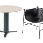The Tilt bar and café table is higher than normal table height, perfect for those who would rather stand than sit. This season we are introducing a new version made in standard table height suitable for dining. When not in use, the tabletops can be tilted into a vertical position to make them easier to store, or angled downwards so that water runs off.