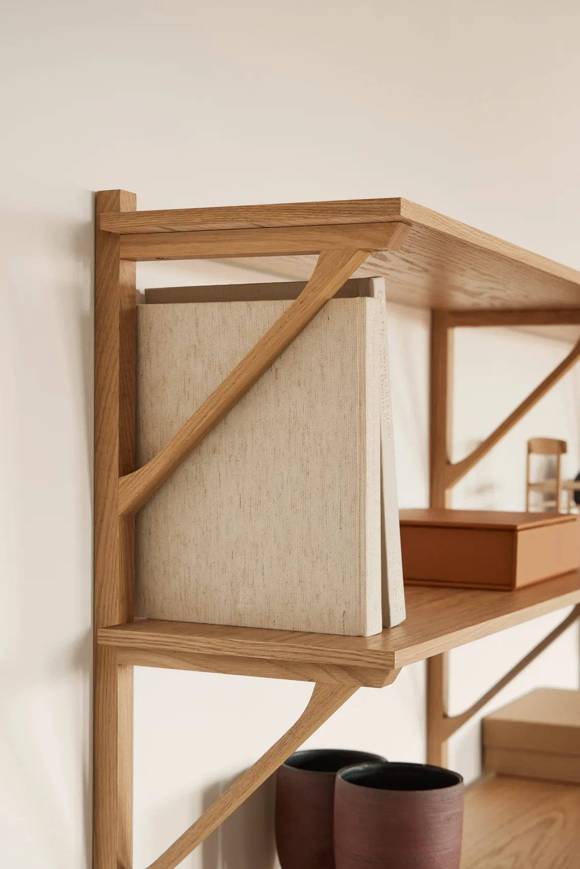 Now the BM29 shelf is being relaunched. Representing an honest design that both demonstrates Fredericia’s long-standing tradition and expertise in well-designed quality wooden furniture and exemplifies the close and long-standing collaboration with Mogensen as the head designer for the family business. The shelves’ functionality and simple aesthetic are a great example of Mogensen’s practical approach to design, which not only fulfils a purpose but also contributes to the look of the interior decor. An elegant design that is a beautiful piece of craftsmanship in its own right, and which provides the perfect setting for all the things you want to have on display in your home, whether arts and crafts, prints or mementos.
