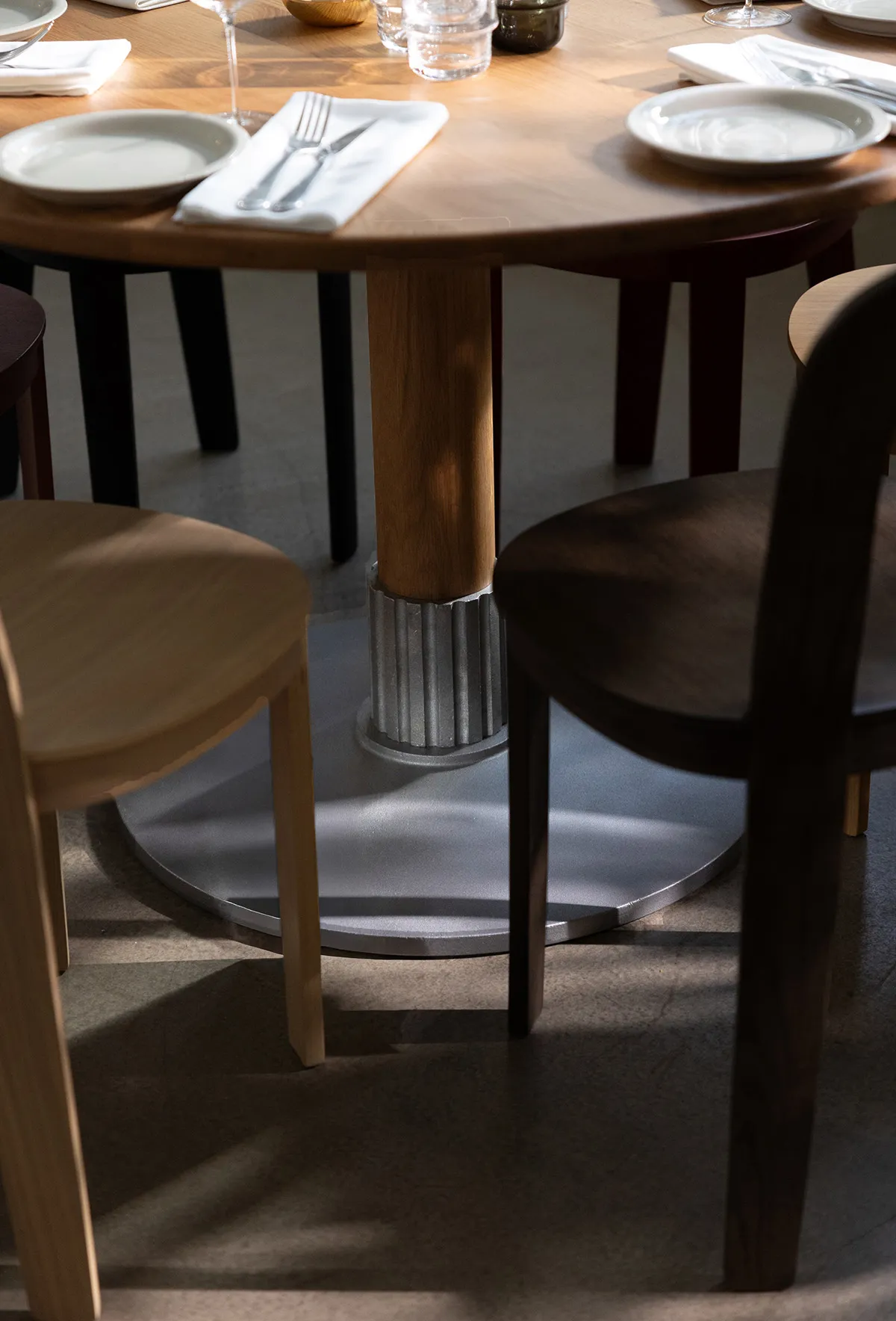’I’ve always been fascinated by cogwheels.’ says Anna Kraitz stroking the particular inset where the pillar meets the sand casted base, ’Tock is a reminder of a café or a bistro in Paris, or anywhere in central and southern Europe, but also of Charlie Chaplin’s Modern Times where that opposition between man and machine is turned into an aesthetic.’