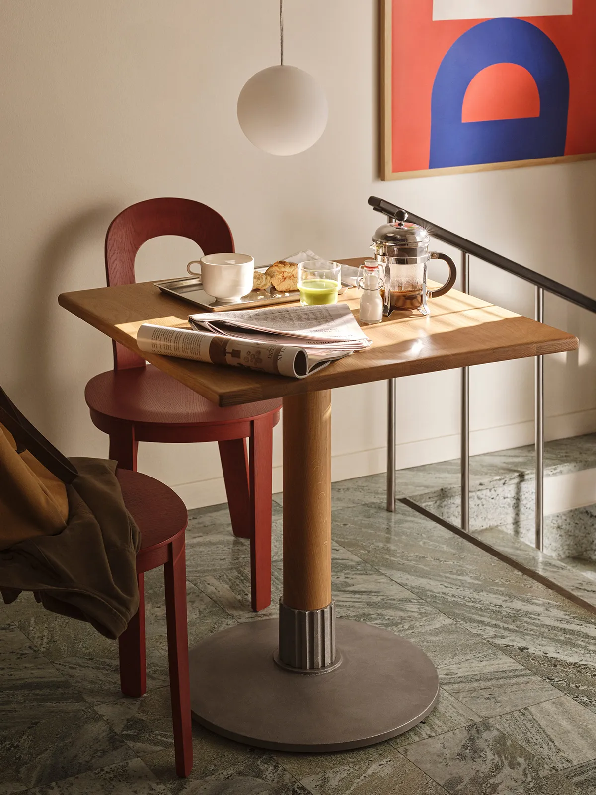 Anna Kraitz matches her design work with an artistic approach that gifts a straightforward need for functionality with a poetic sensibility. Pair Tock with the Olivia chair by Tatu Laakso, and voilà here is a stage set for debate, passion, friendship, and curiosity, as well as new flavours, ideas, and impromptu meetings. The wooden top and the metal base are a statement in a time where we crave the presence of the real beyond the ephemeral. Six hidden screws will adjust Tock to stand perfectly firm. And if required, a rectangular version is available on request, of course.
