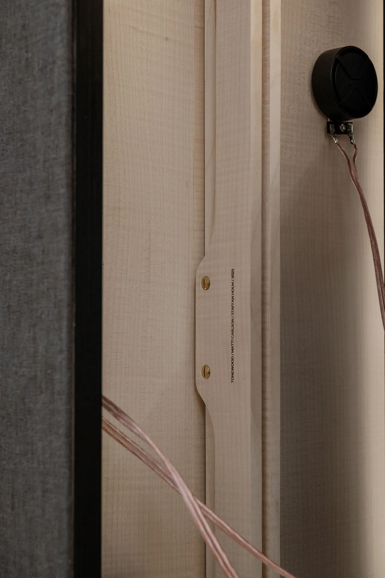 The speaker is crafted from flame maple, the same type of maple used in cello making. We had the great oportunity to source directly from one of Europes most acclamed supplier of instument wood, Andreas Pahler and Alpentonholtz in the German alps. This wood was harvested in 2016 from the Austrian alps and carefully dried to 5% humidity to ensure optimal acoustic properties.