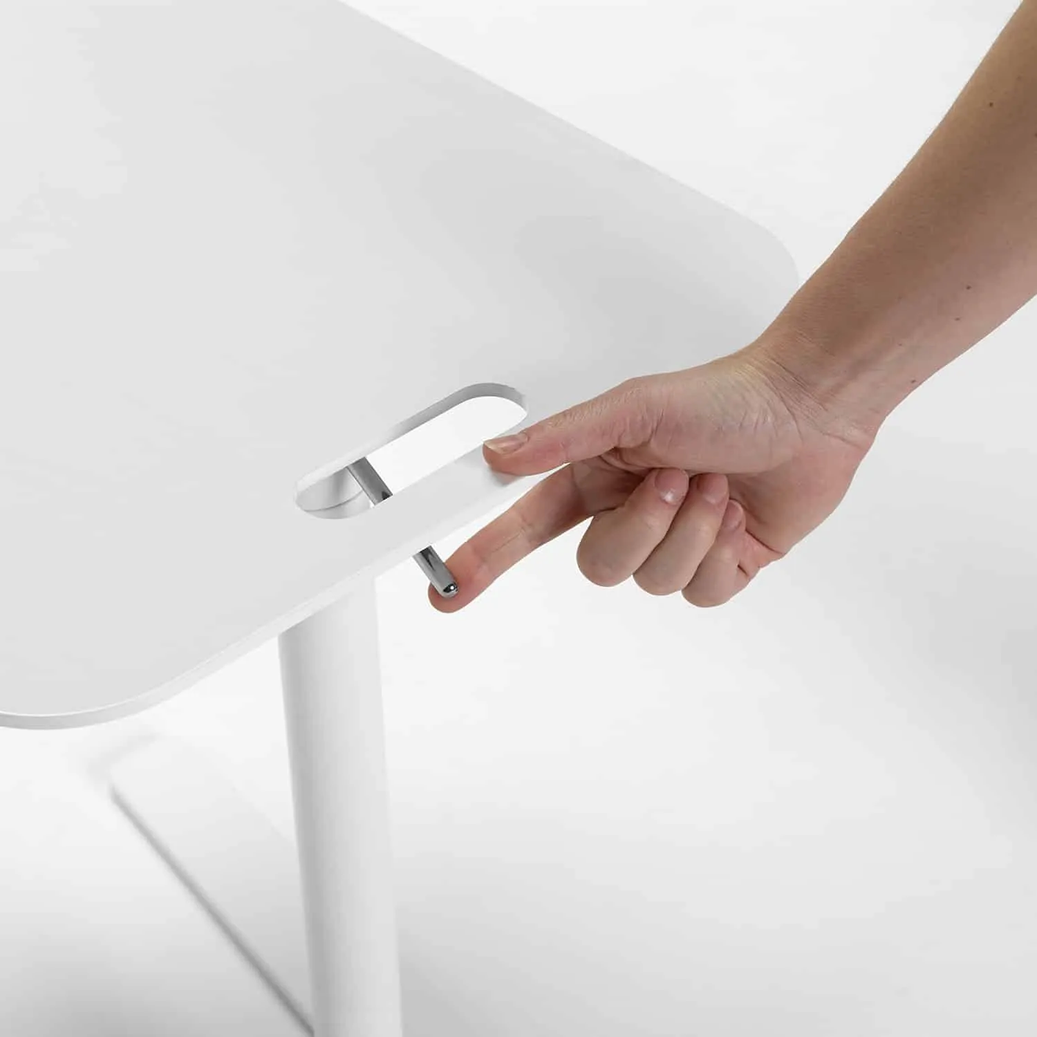 – I always knew when James had fallen asleep by the thud of the telephone landing on the floor. Every night the same story. He would have liked an extendable bedside table on which to put his phone, glasses or book. When watching a film stretched out on the sofa, we never wanted to get up to eat. We would have liked two height adjustable table-trays for a plate and glass, a bottle of wine and the remote. When in our studio, we often need an extension for our conference table: a support top to put a cup of coffee on or do sketches on, that would adapt to the height of one’s chair. And that’s how James came up with the idea of a table that would come to your aid at different moments of everyday life, explains Marialaura Rossiello Irvine // Studio Irvine.