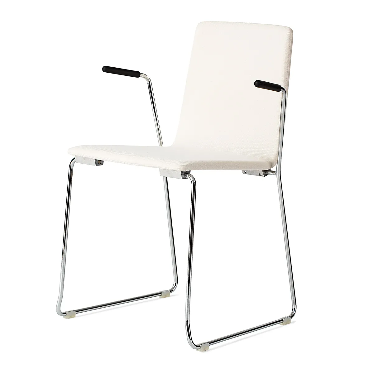 The TORRO chair by Jonas Lindvall for Skandiform epitomizes minimalist Scandinavian design. Created in 2004, this stackable chair features a chrome metal runner base with birch or oak seating options. Available as standard chair or armchair with optional upholstery, TORRO combines functional efficiency with refined aesthetics. At 6kg weight and 45cm seat height, it offers space-saving stackability perfect for modern offices and public spaces requiring flexible, sustainable seating solutions.