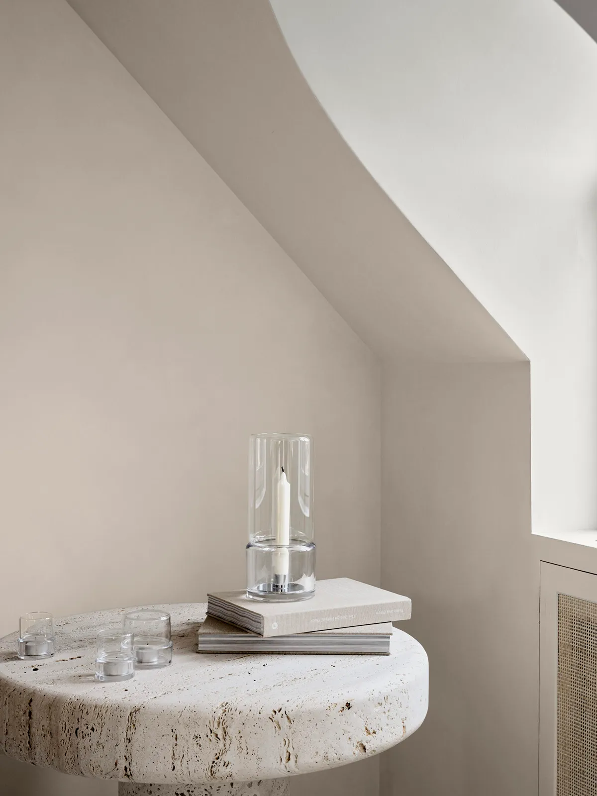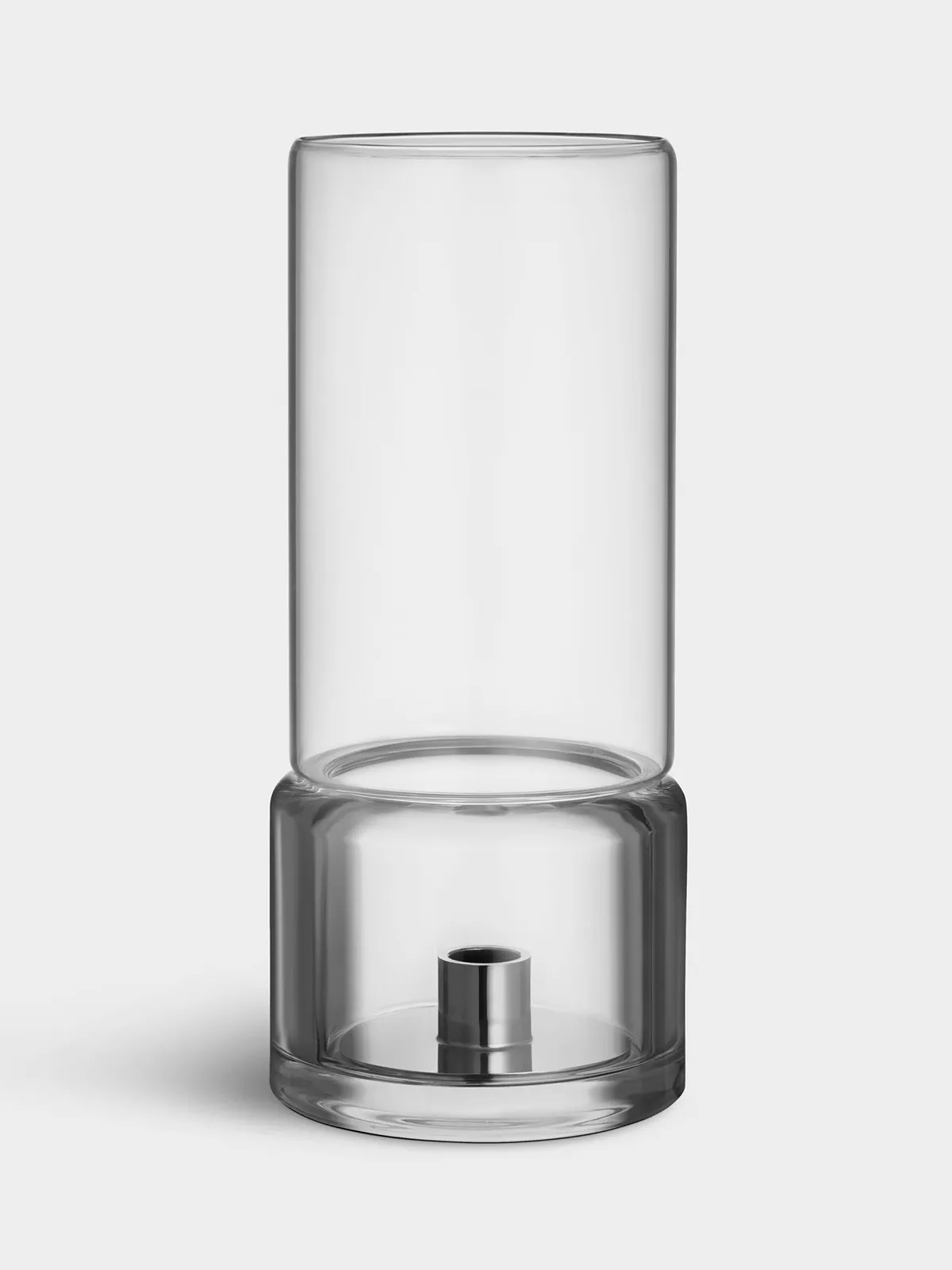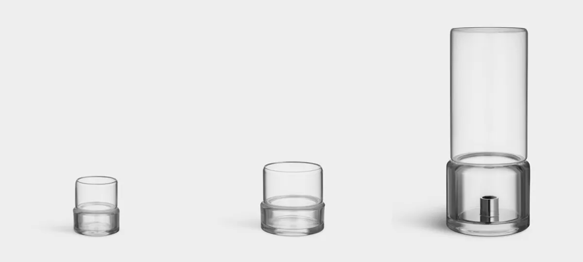 The collection – two votives and one hurricane lamp – is made in a two-part design that combines functionality and minimalistic lines. The hurricane lamp fits both indoors and outdoors and is intended for either pillar candles or classic candles (a functional metal holder is included).