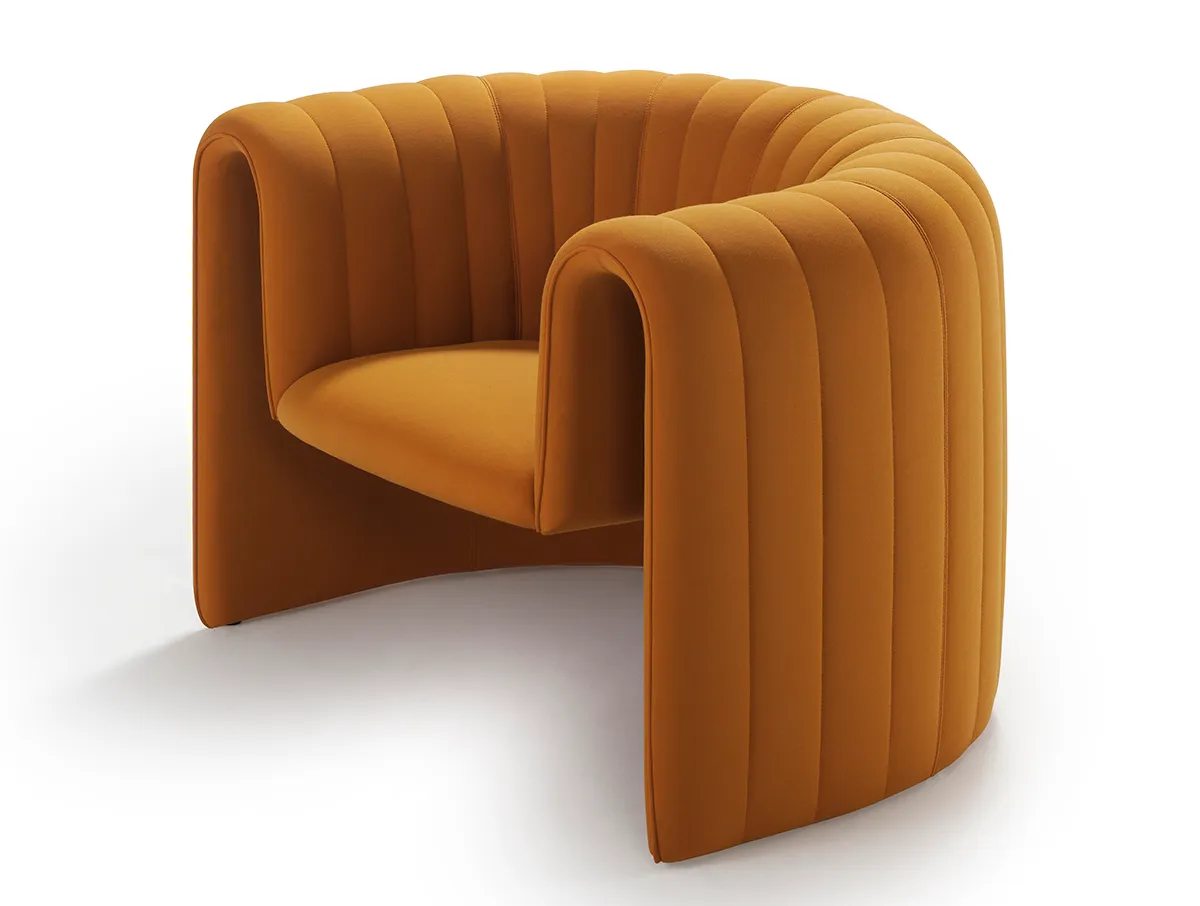 Core’s armchair and sofas volumes show matter in its pure state. Its formal design, which brings to mind classically-inspired furniture and shapes, presents its most contemporary facet through the materials used.
